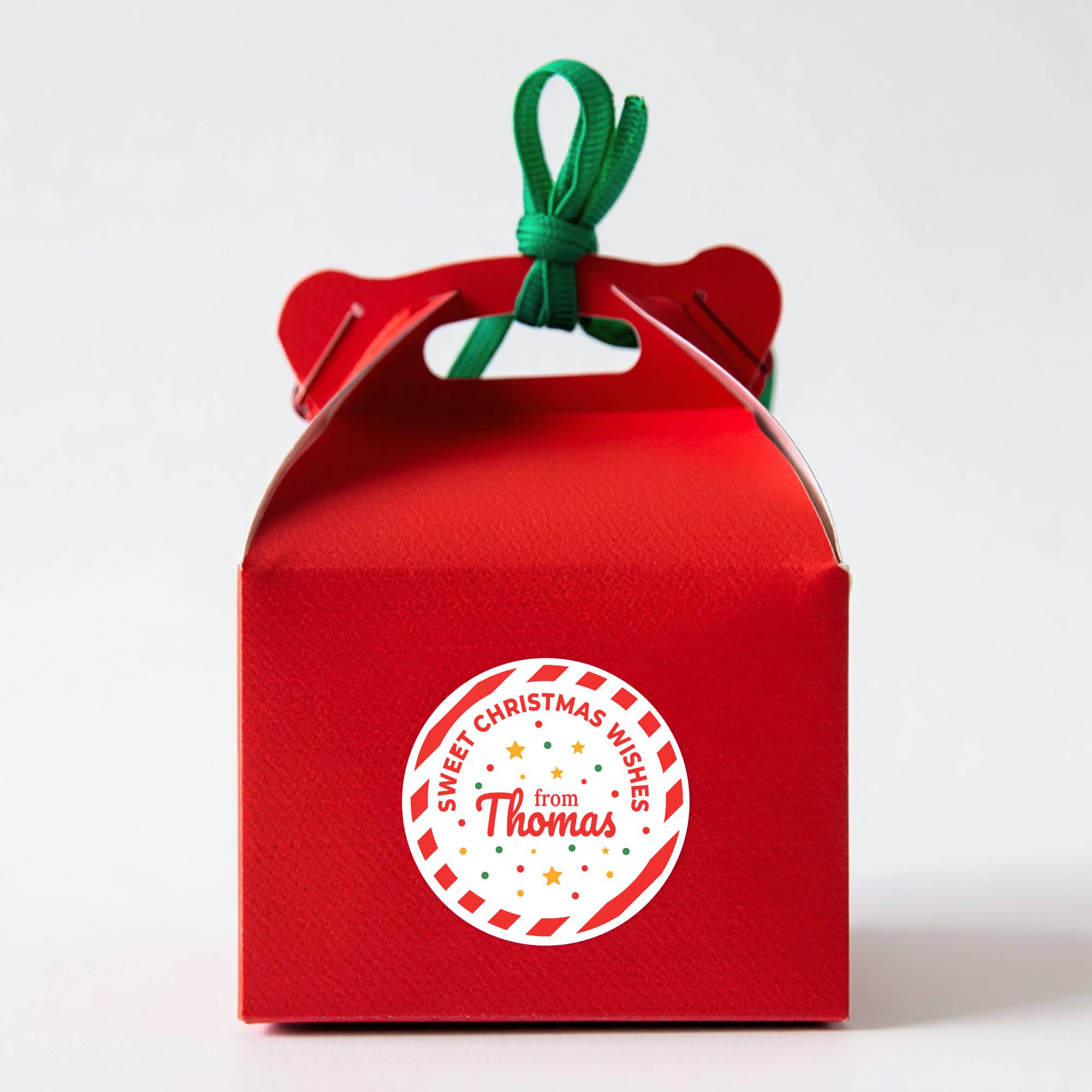 Add a magical finishing touch to your Christmas gifts with these custom kids’ Christmas sticker labels! Each sheet includes 24 round stickers (40mm), personalised with your child’s name and featuring a fun festive candy cane design. Perfect for small gifts, party favour bags, lollypops, tote bags, candy bags, Christmas Eve boxes, and stocking fillers.