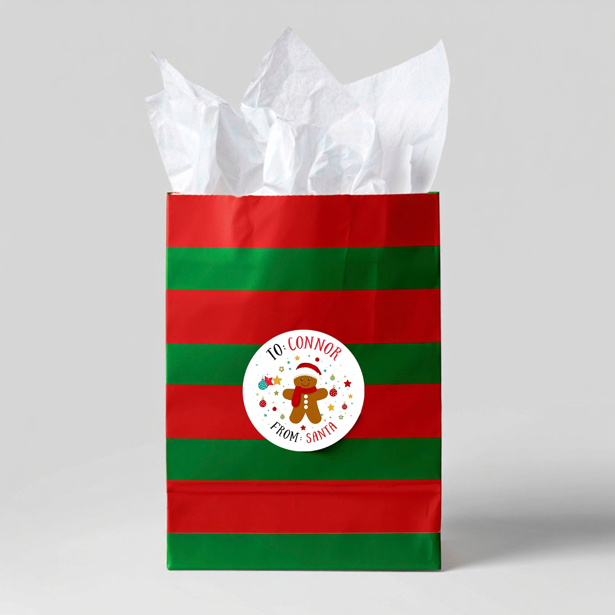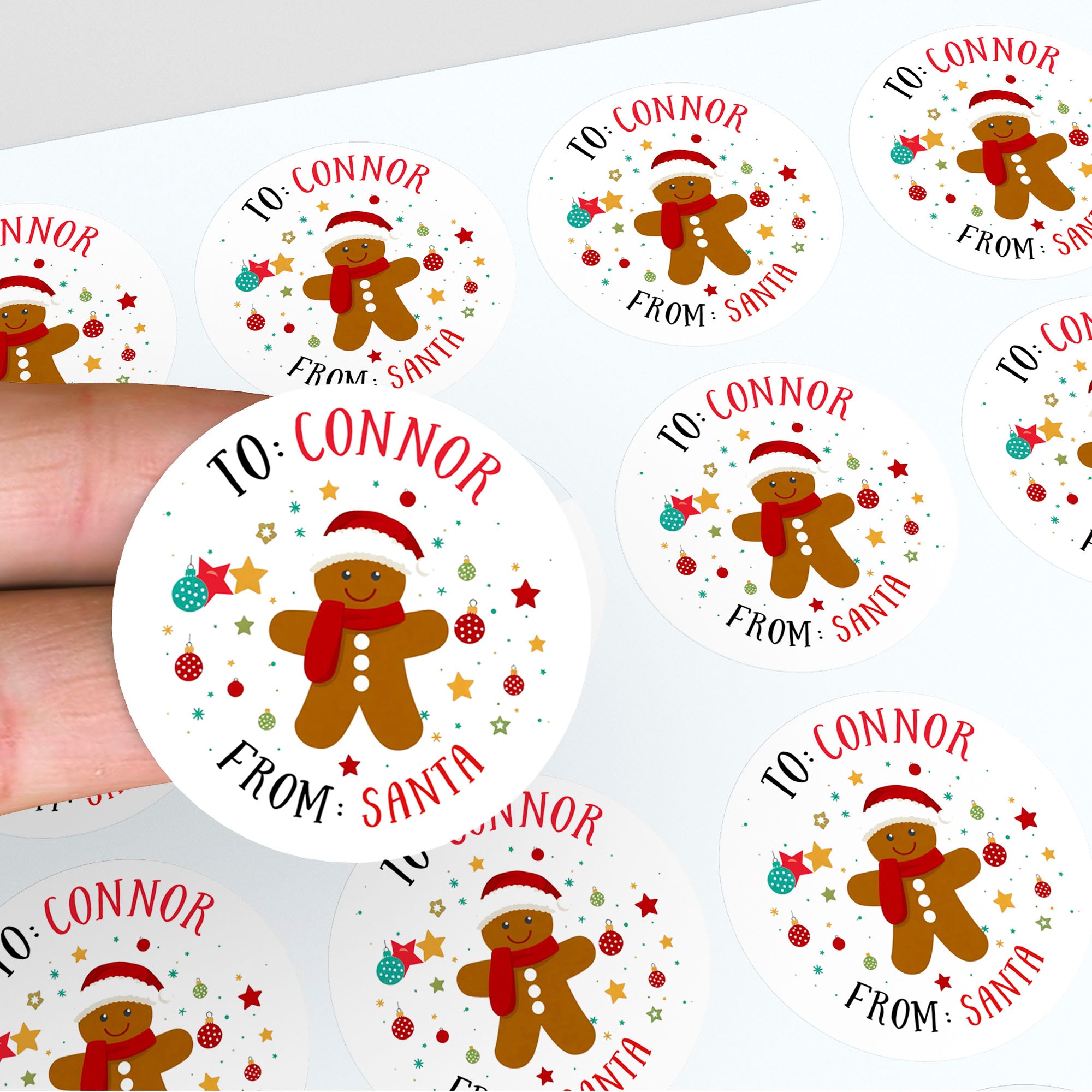 Personalised Kids Christmas Sticker Labels Gingerbread Man Festive