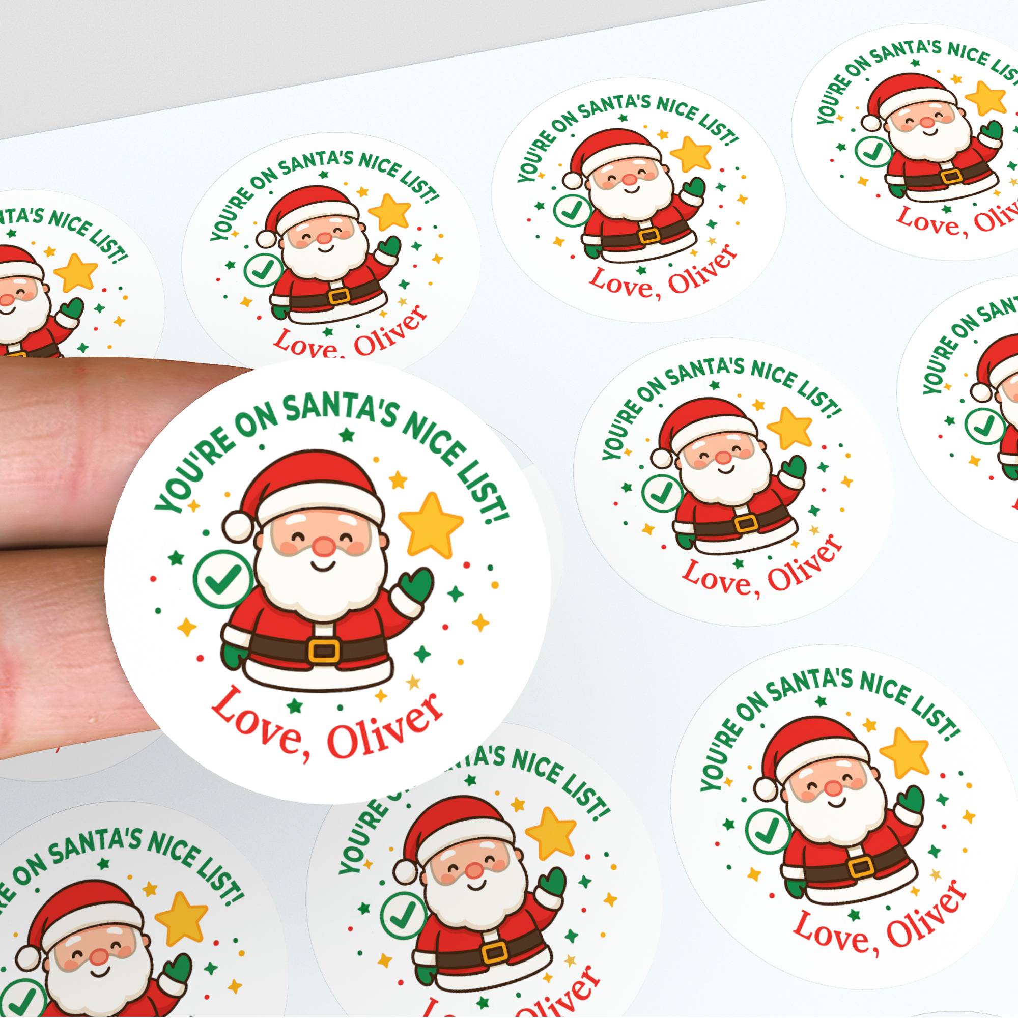 Personalised Kids Christmas Sticker Labels Santa's Nice List