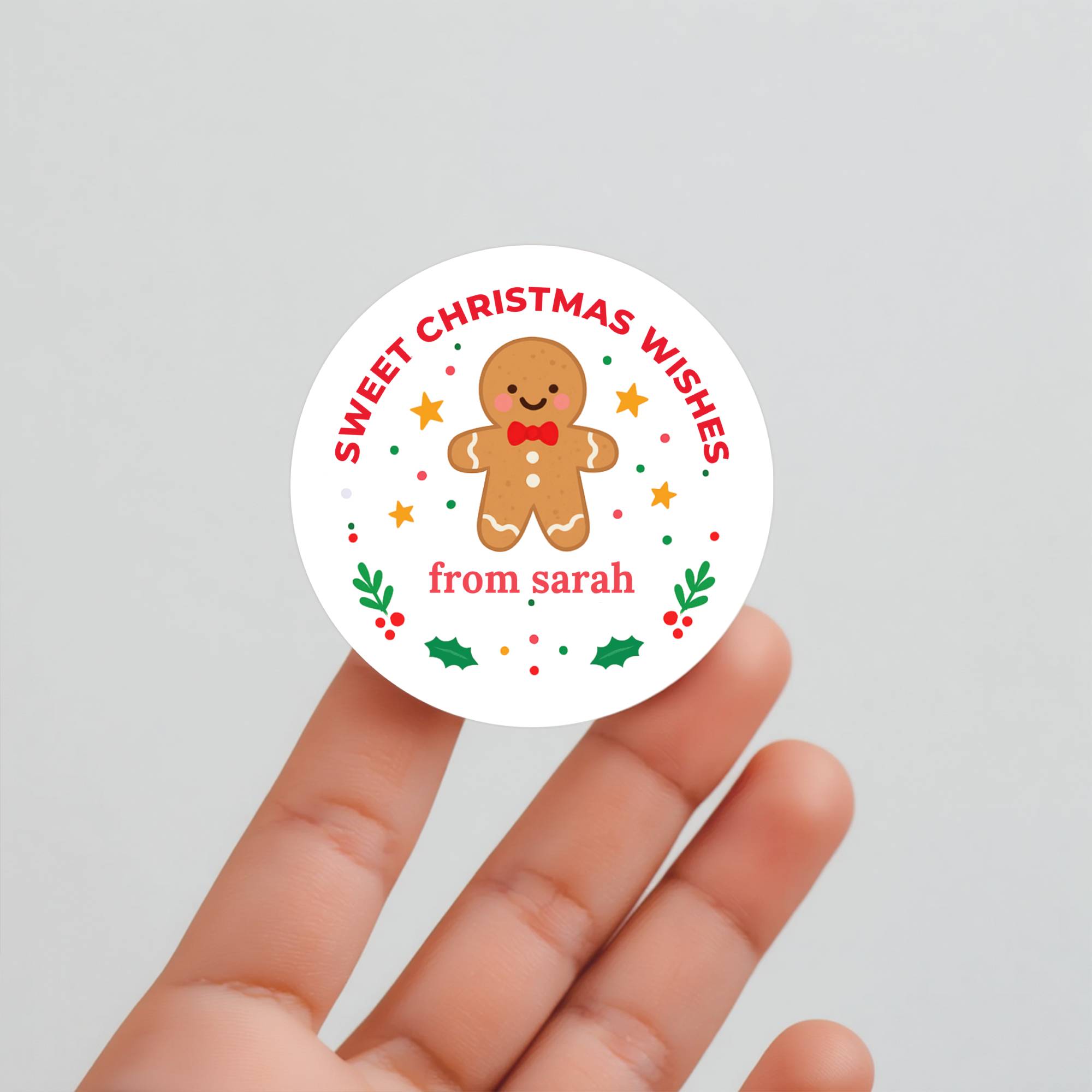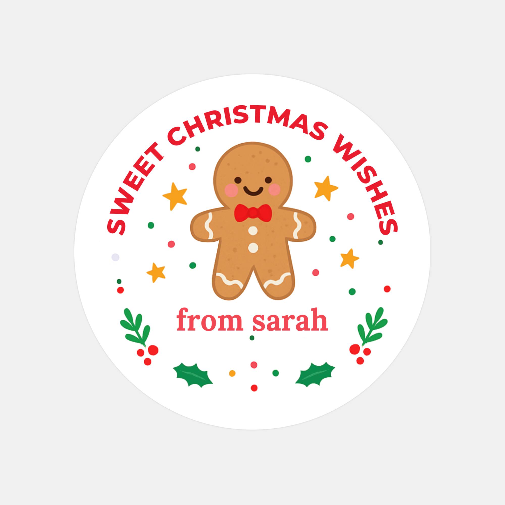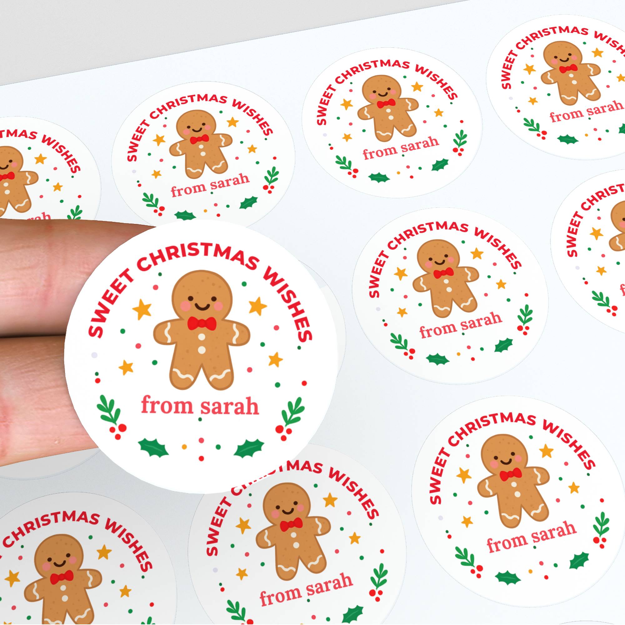 Personalised Kids Sticker Labels Sweet Christmas Wishes Gingerbread Man
