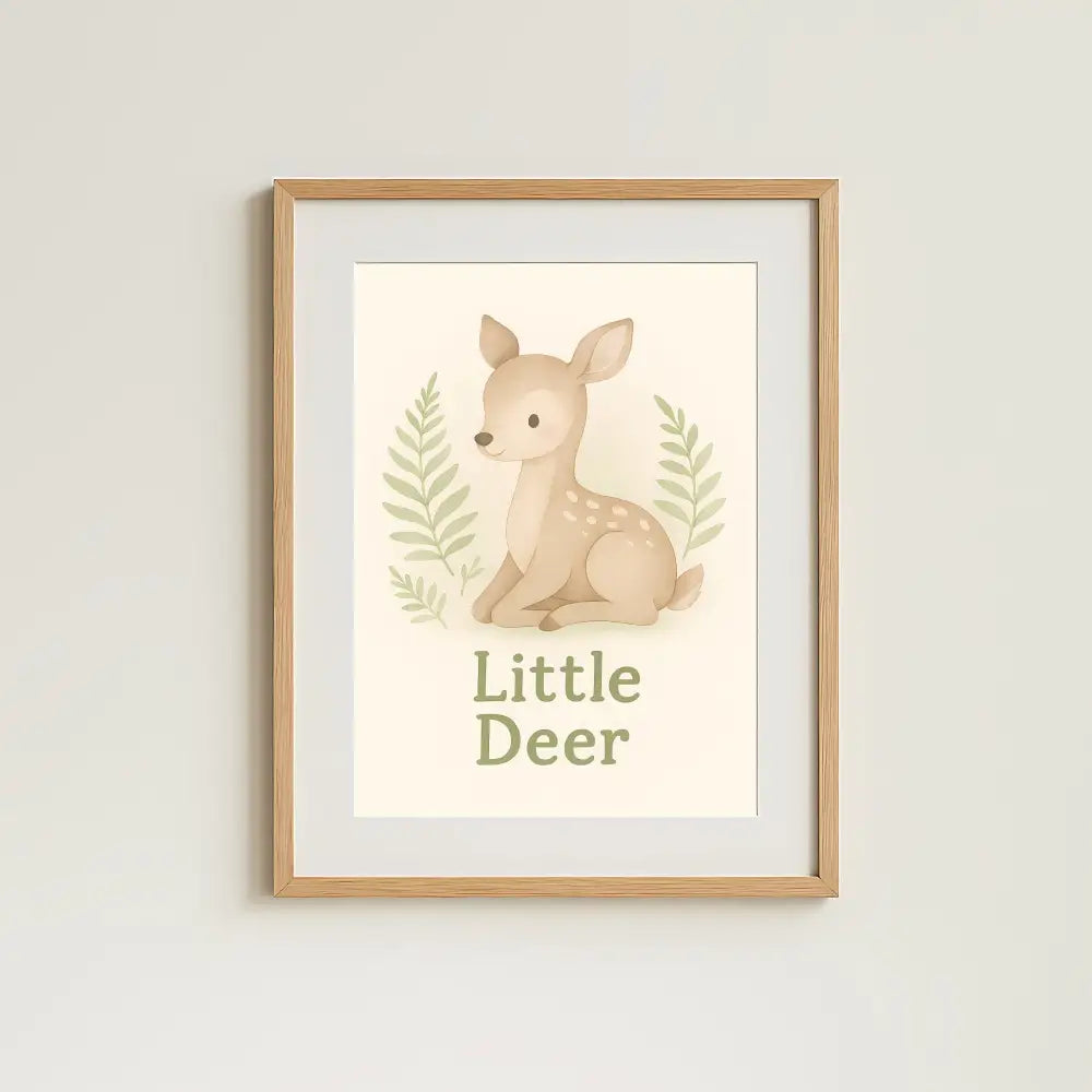 Bring a touch of woodland magic to your child’s space with this Little Deer Nursery Wall Art Print, featuring a sweet baby deer resting peacefully among soft greenery.