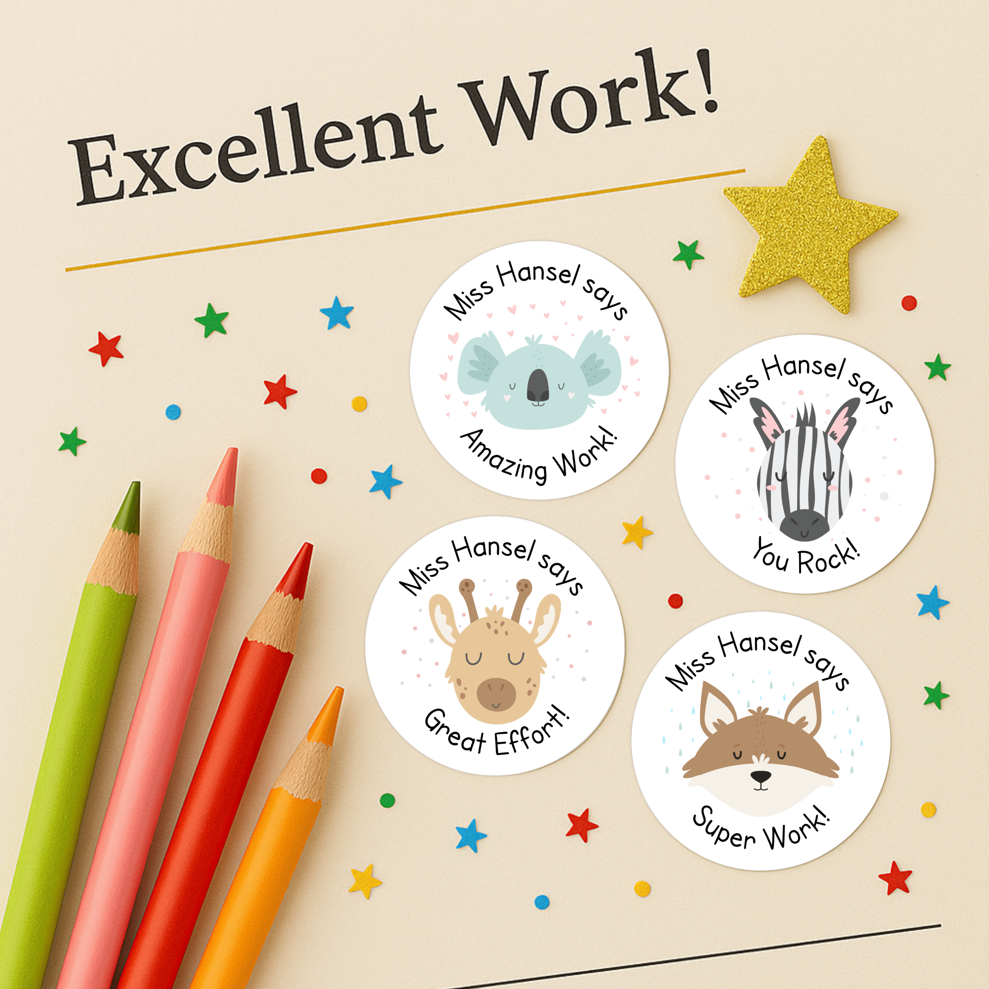 Motivate and delight your students with these adorable personalised teacher reward stickers! Perfect for marking work, rewarding great behaviour, or celebrating special achievements in the classroom.