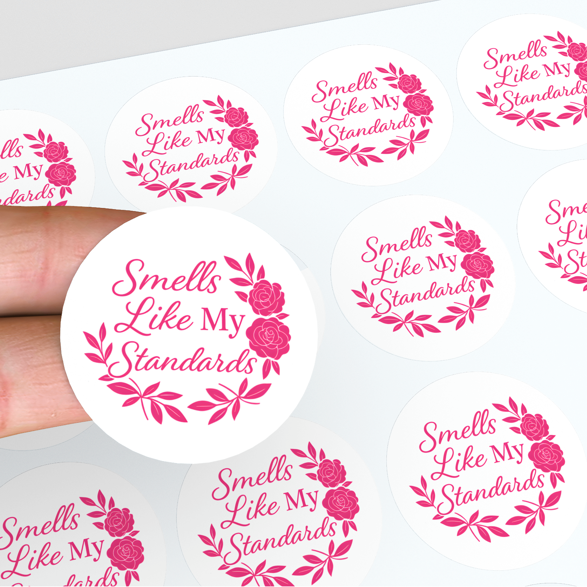 This “Smells Like My Standards” sticker features bold hot pink florals and a chic cursive font — perfect for confident, classy candle collections with a cheeky twist. Designed to empower, inspire, and decorate your self-care or breakup candle jars with a pop of feminine sass.