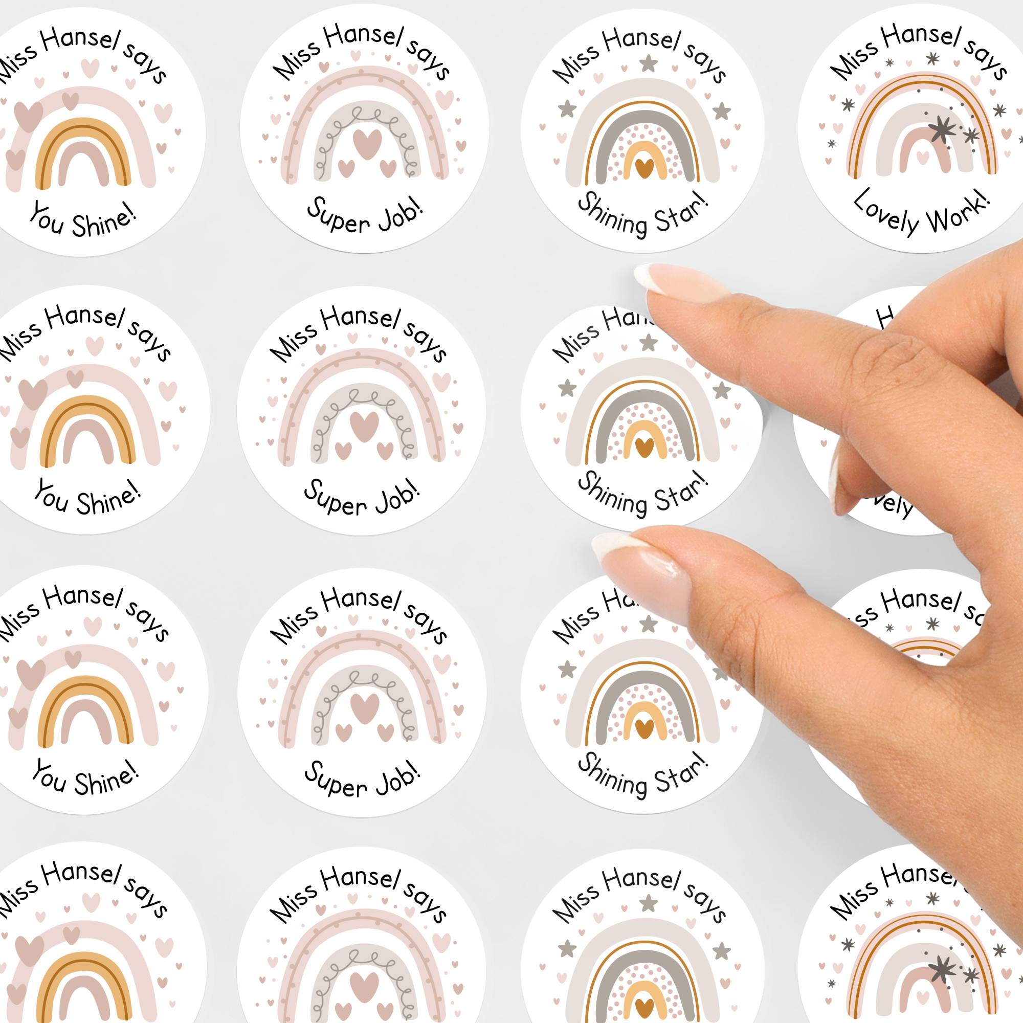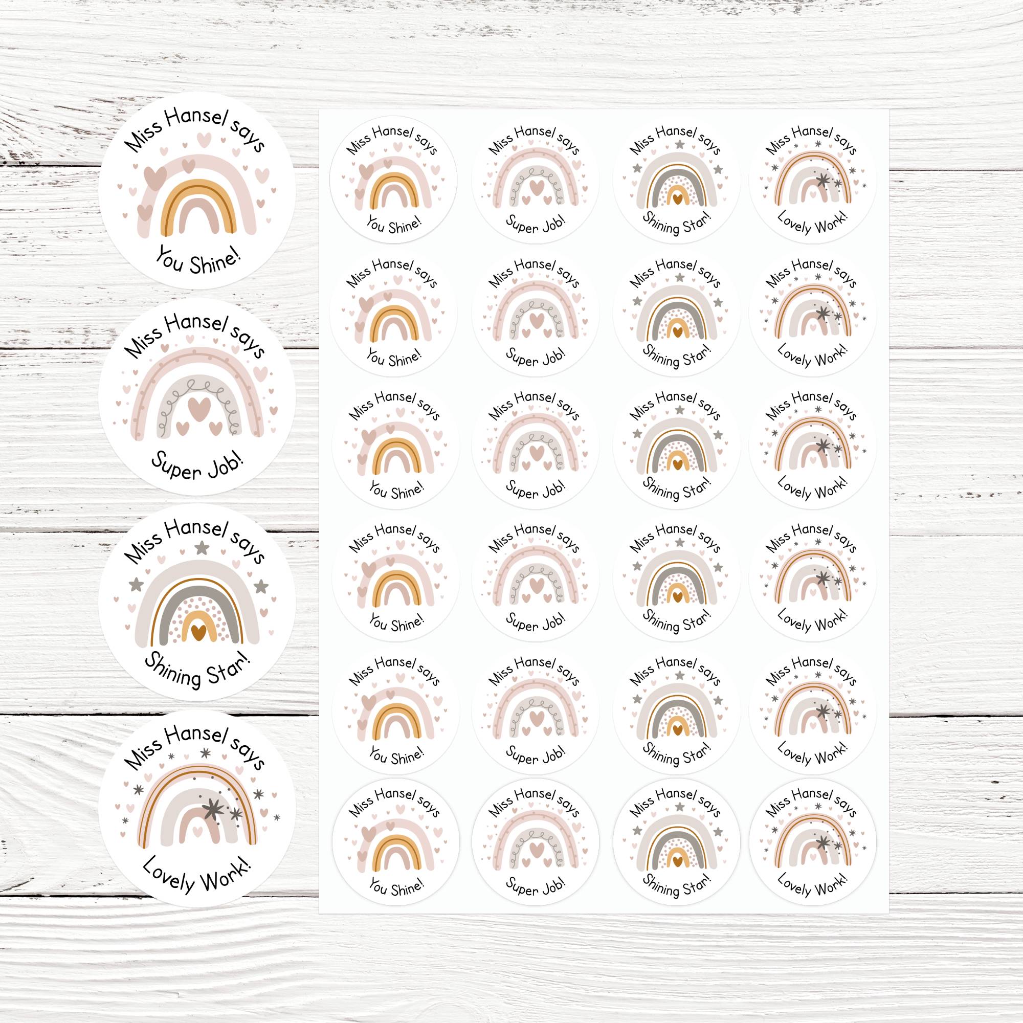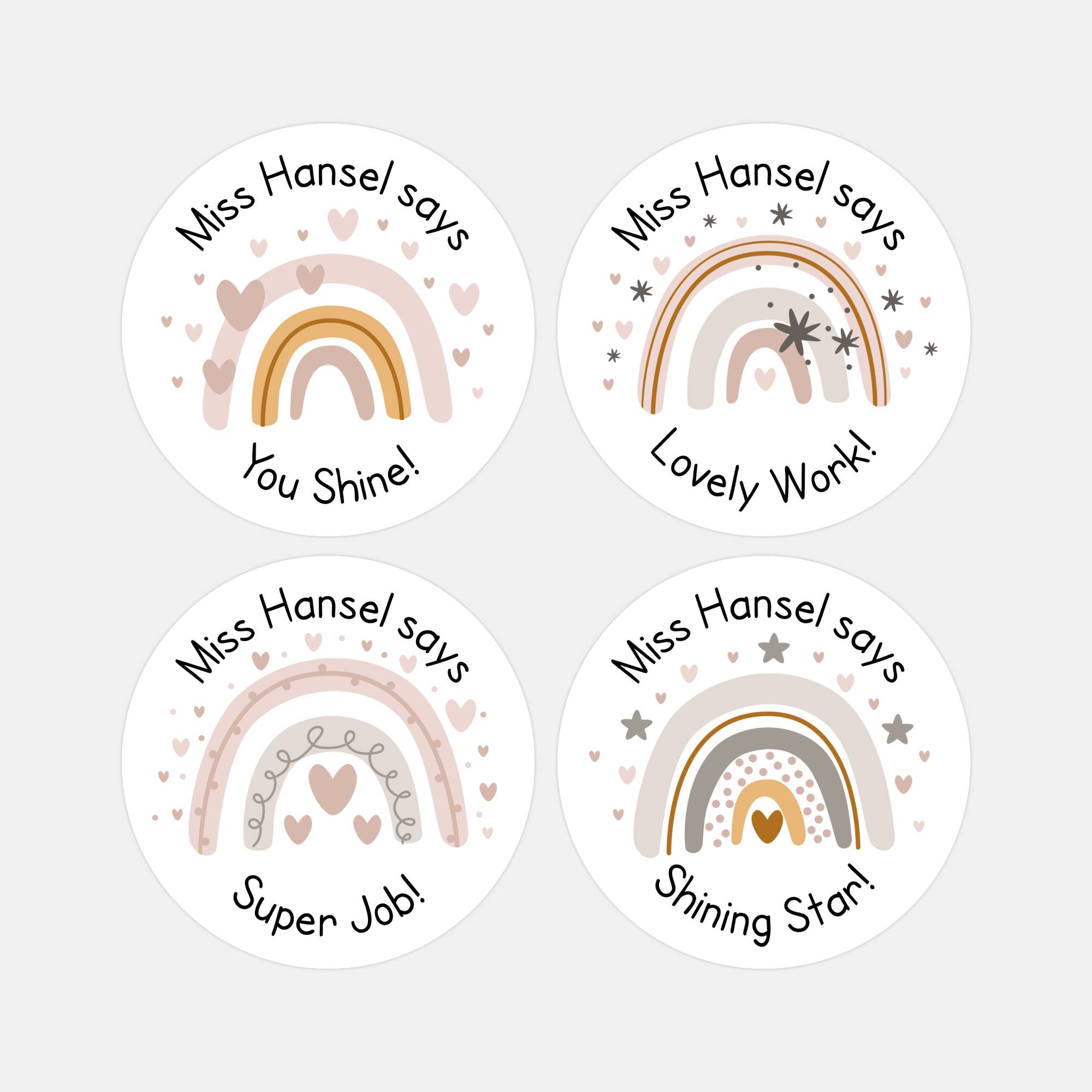 Personalised Teacher Reward Stickers Boho Rainbow Labels