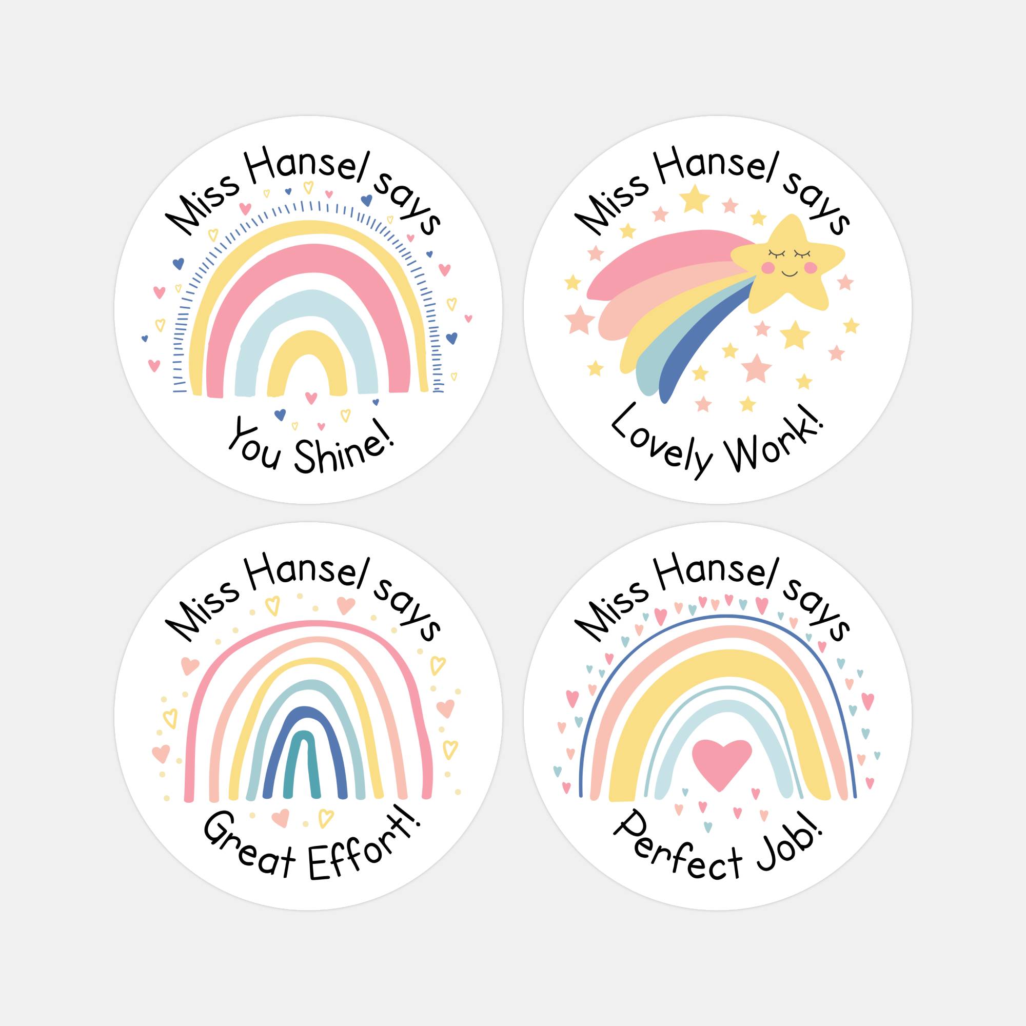Each sticker is customised with your name (e.g. Miss Hansel says) — making every reward extra special and personal!