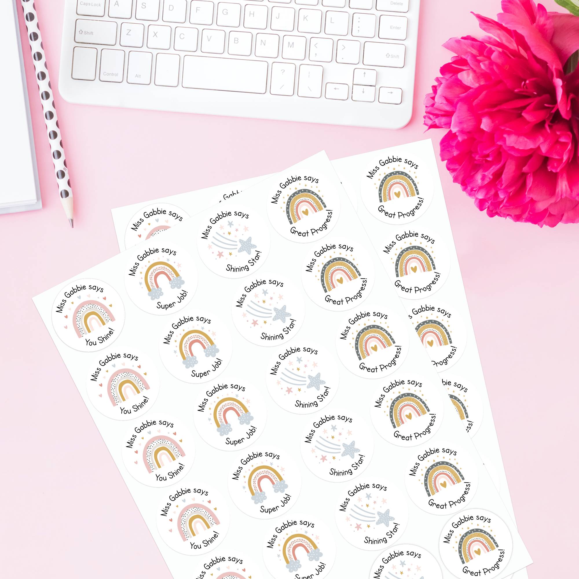 Personalised Teacher Reward Stickers Labels Rainbow & Star Collection