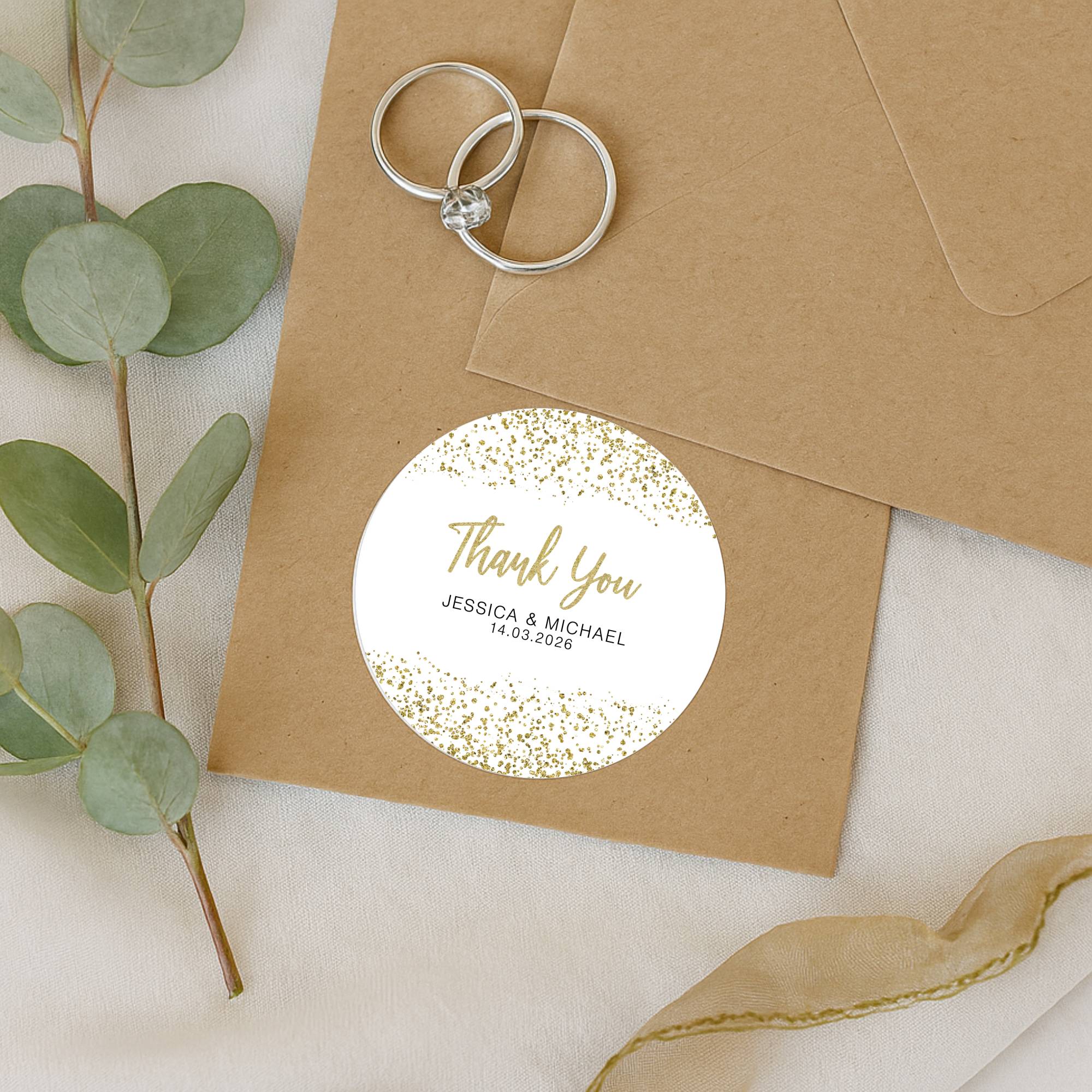 Personalised Gold Glitter Thank You Wedding Stickers