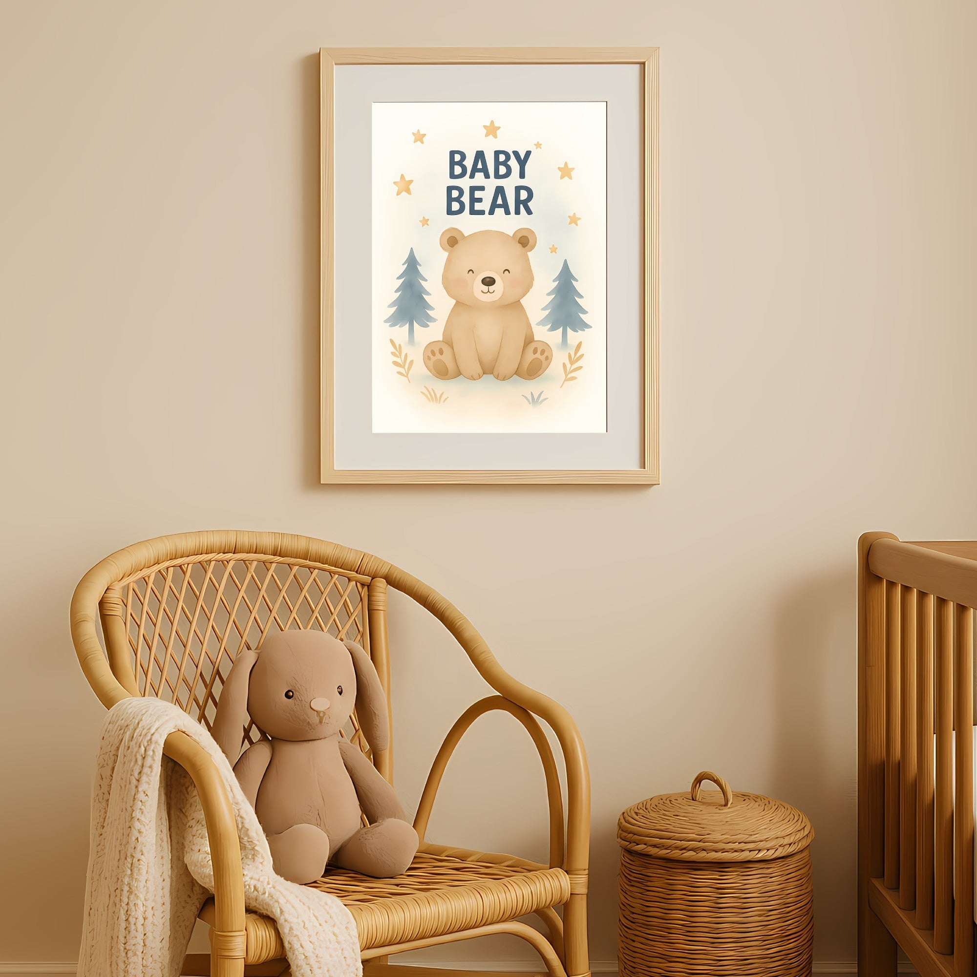 Baby Bear Nursery Wall Art Print – Woodland Animal Printable (Digital Download)
