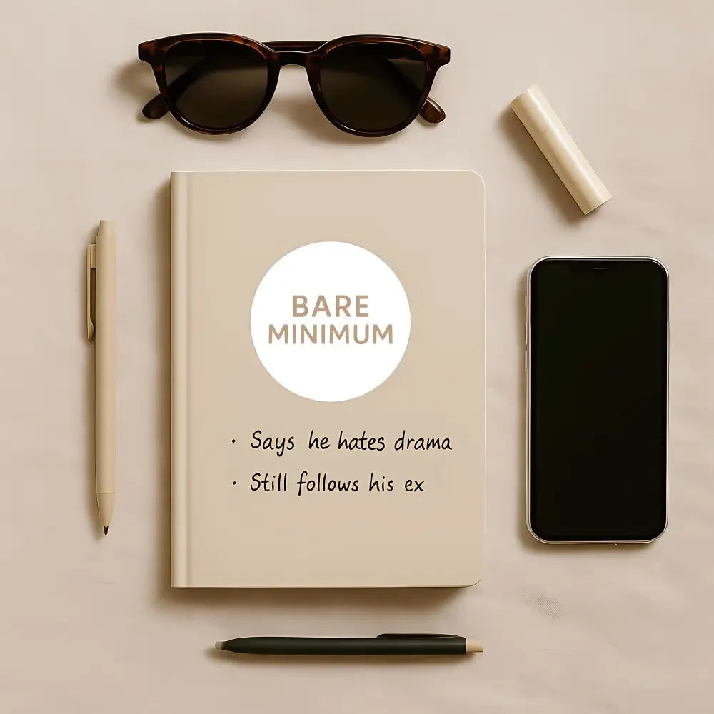 Featuring minimalist typography in warm neutral tones, this design captures that familiar moment when enthusiasm fades and standards rise. Perfect for journals, planners, dating notes, and reminders that doing the least is not the same as doing enough.
