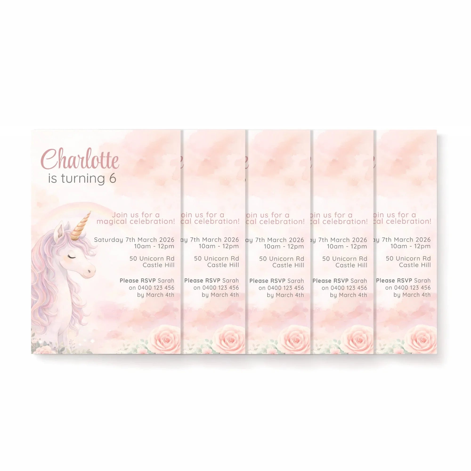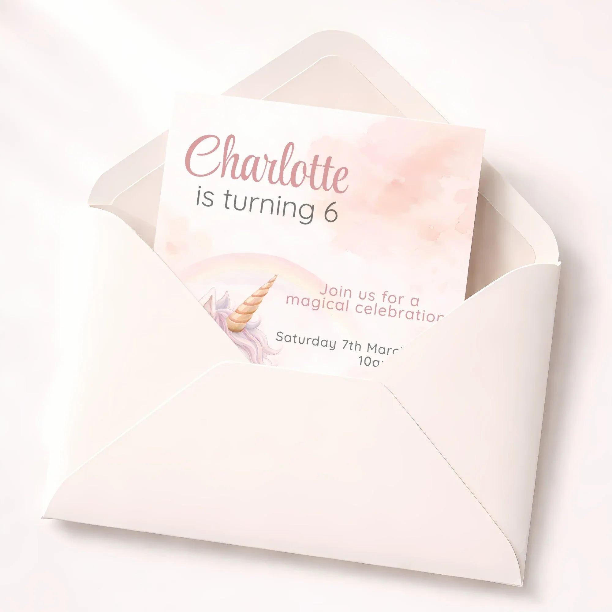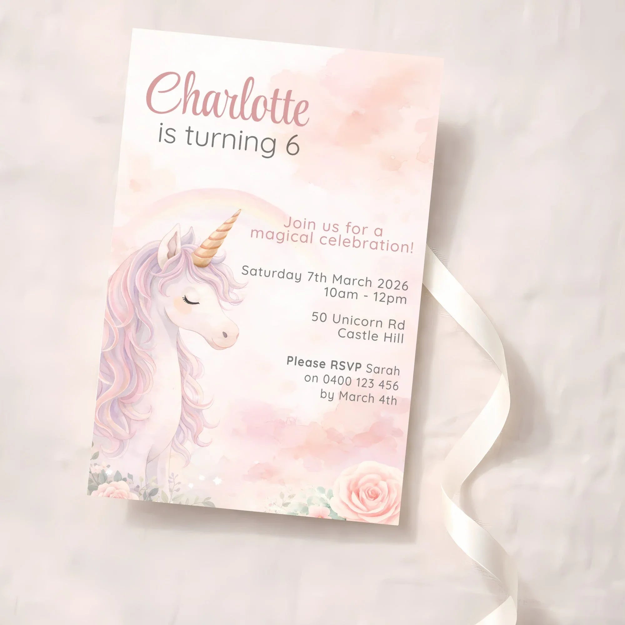 Blush Unicorn Birthday Invitations | Personalised Pastel Party Invites