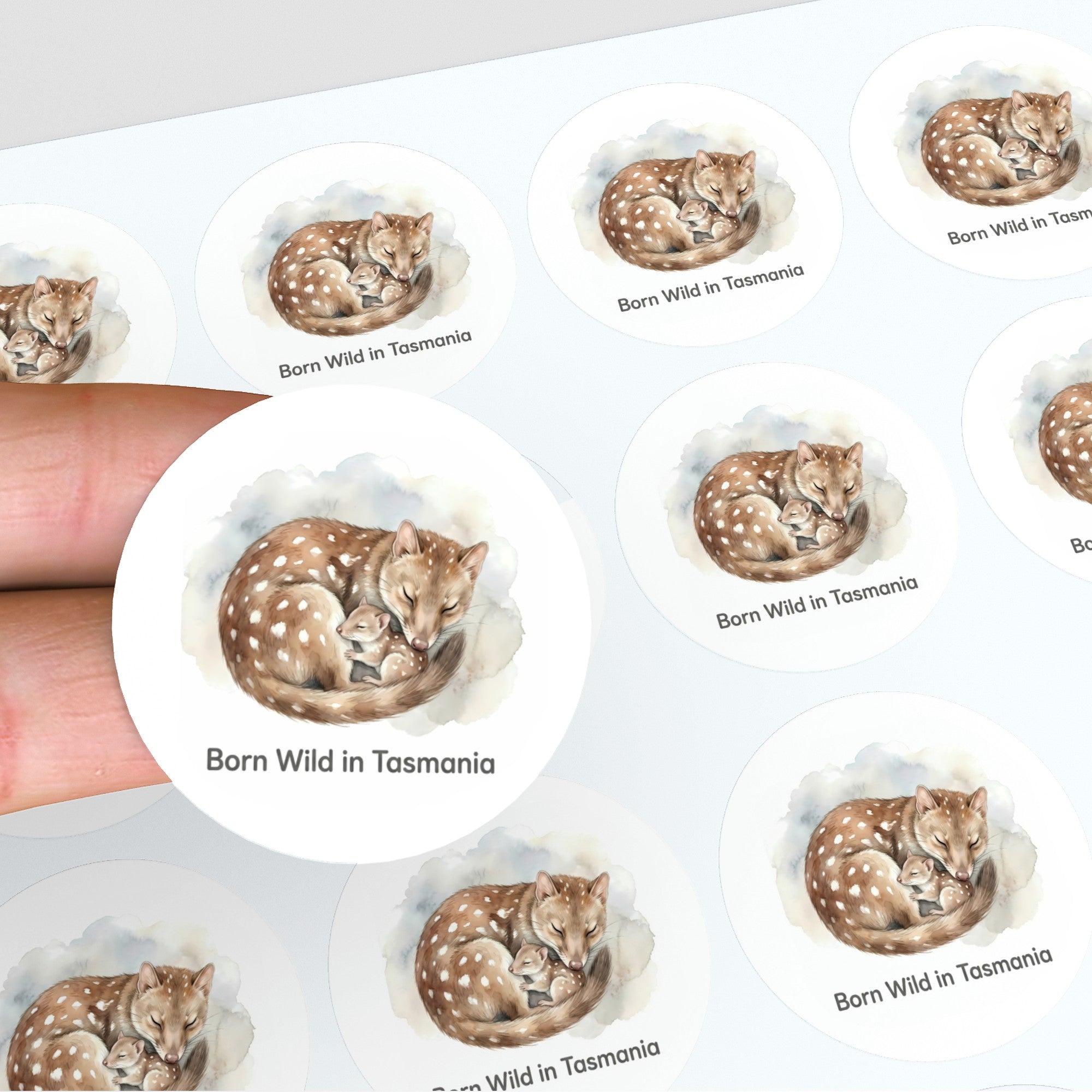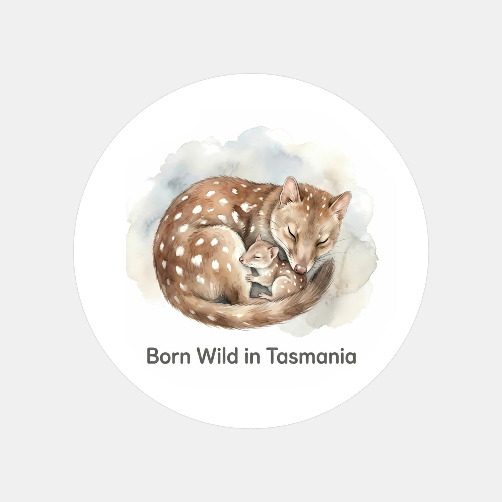 Born Wild in Tasmania Quoll Sticker – Tasmanian Wildlife Mother & Baby Round Sticker