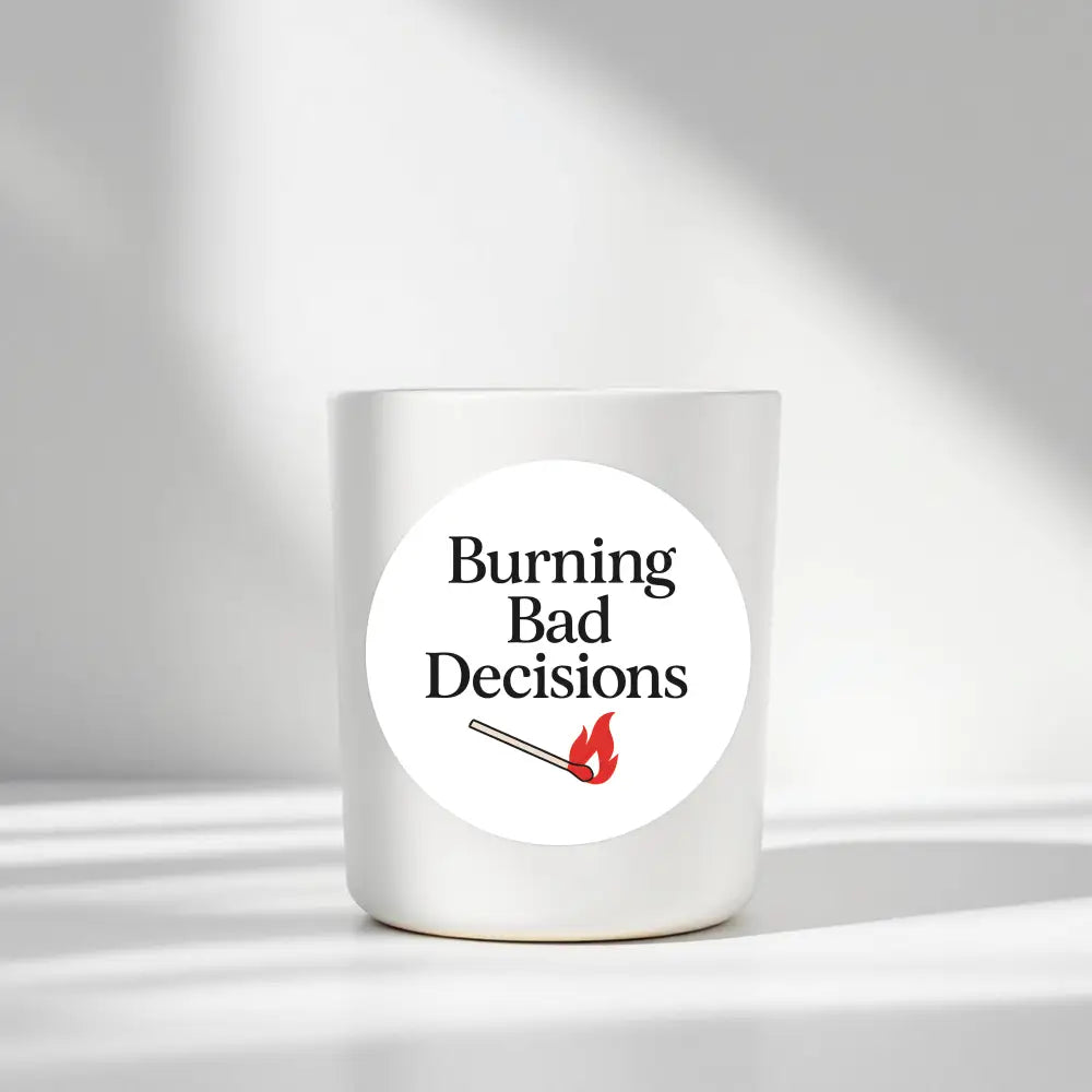 This bold and minimalist “Burning Bad Decisions” sticker is perfect for your sassy candle collection or self-care line. Featuring clean black typography with a red flame match graphic, it delivers the perfect mix of humor and aesthetic.