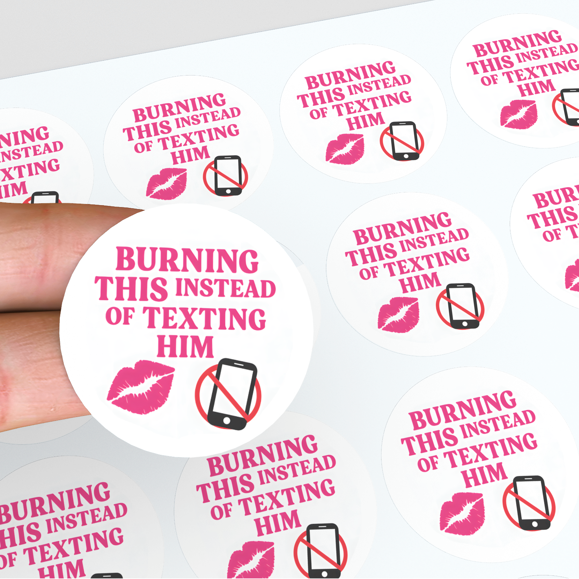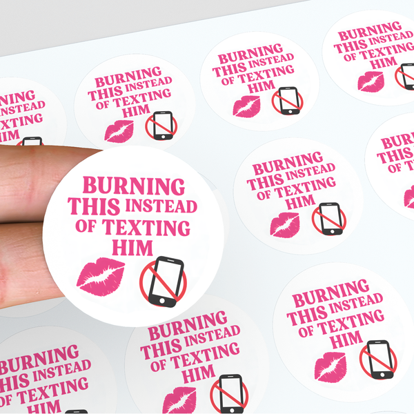 Burning This Instead of Texting Him” Candle Label Stickers
