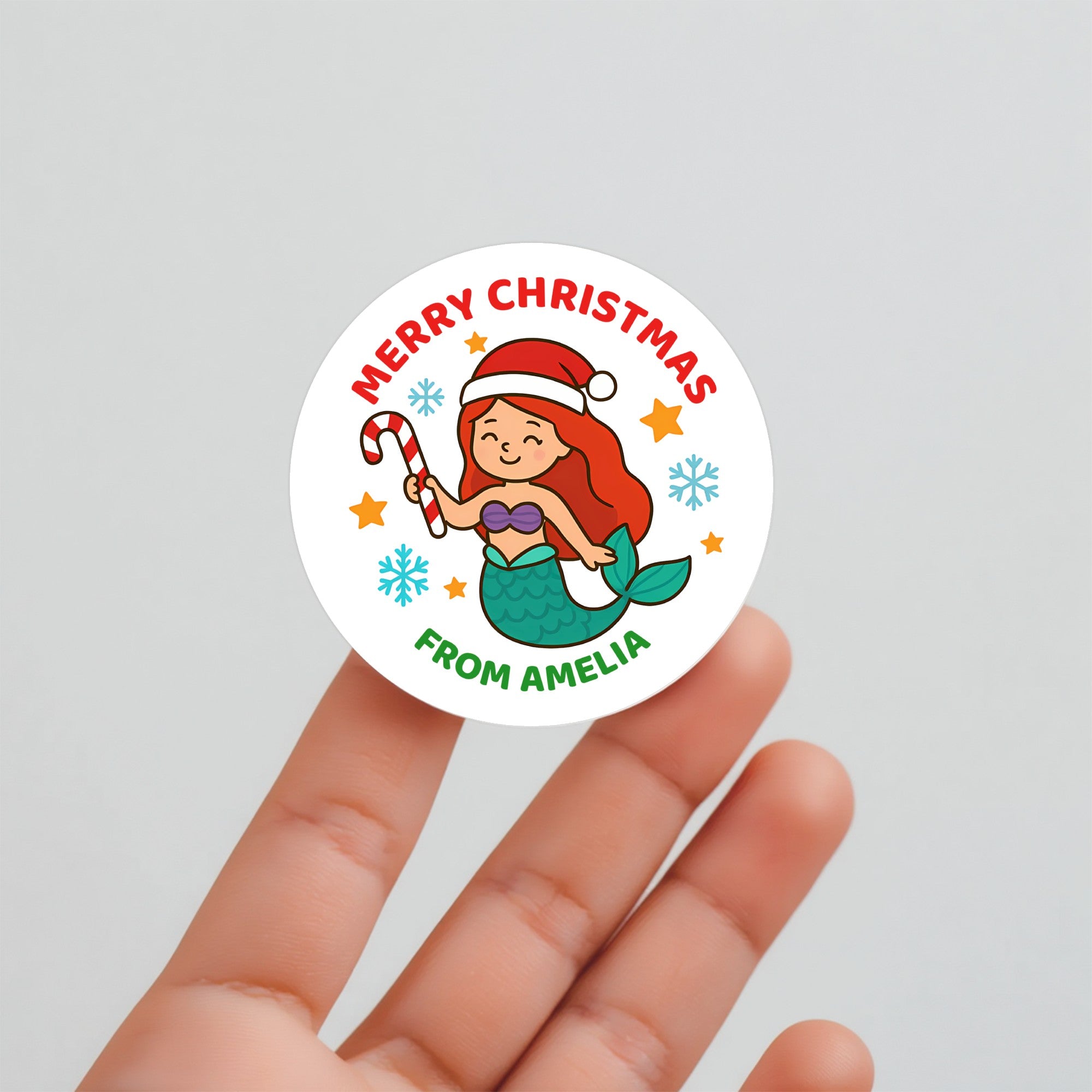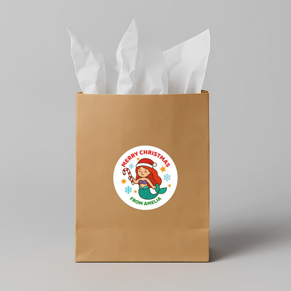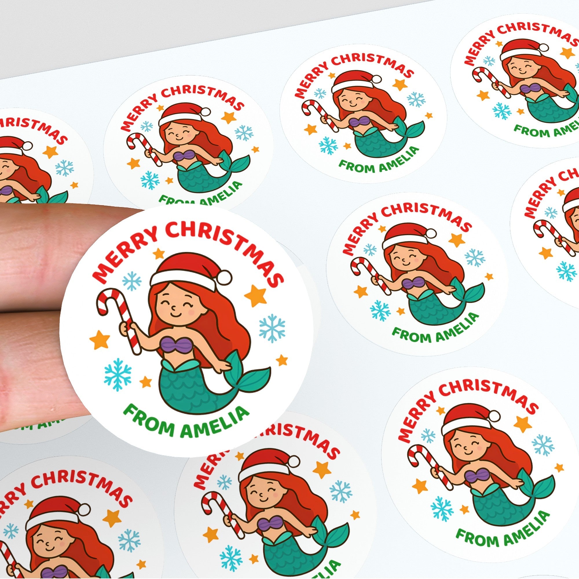 Add a splash of magic to your festive gifts with these Personalised Mermaid Christmas Stickers, featuring a sweet mermaid in a Santa hat holding a candy cane. Perfect for kidsβ Christmas presents, Santa sacks, school gifts, Christmas Eve boxes and holiday treat bags.