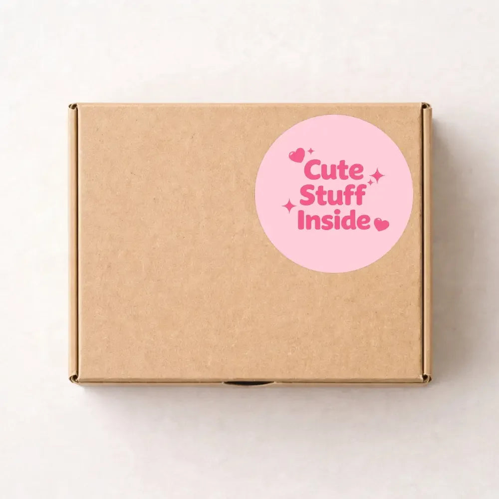 Add a playful, feel-good touch to your parcels with these adorable “Cute Stuff Inside” round stickers. Designed for small businesses and Etsy sellers, these labels instantly make your packaging feel fun, friendly, and gift-like.
