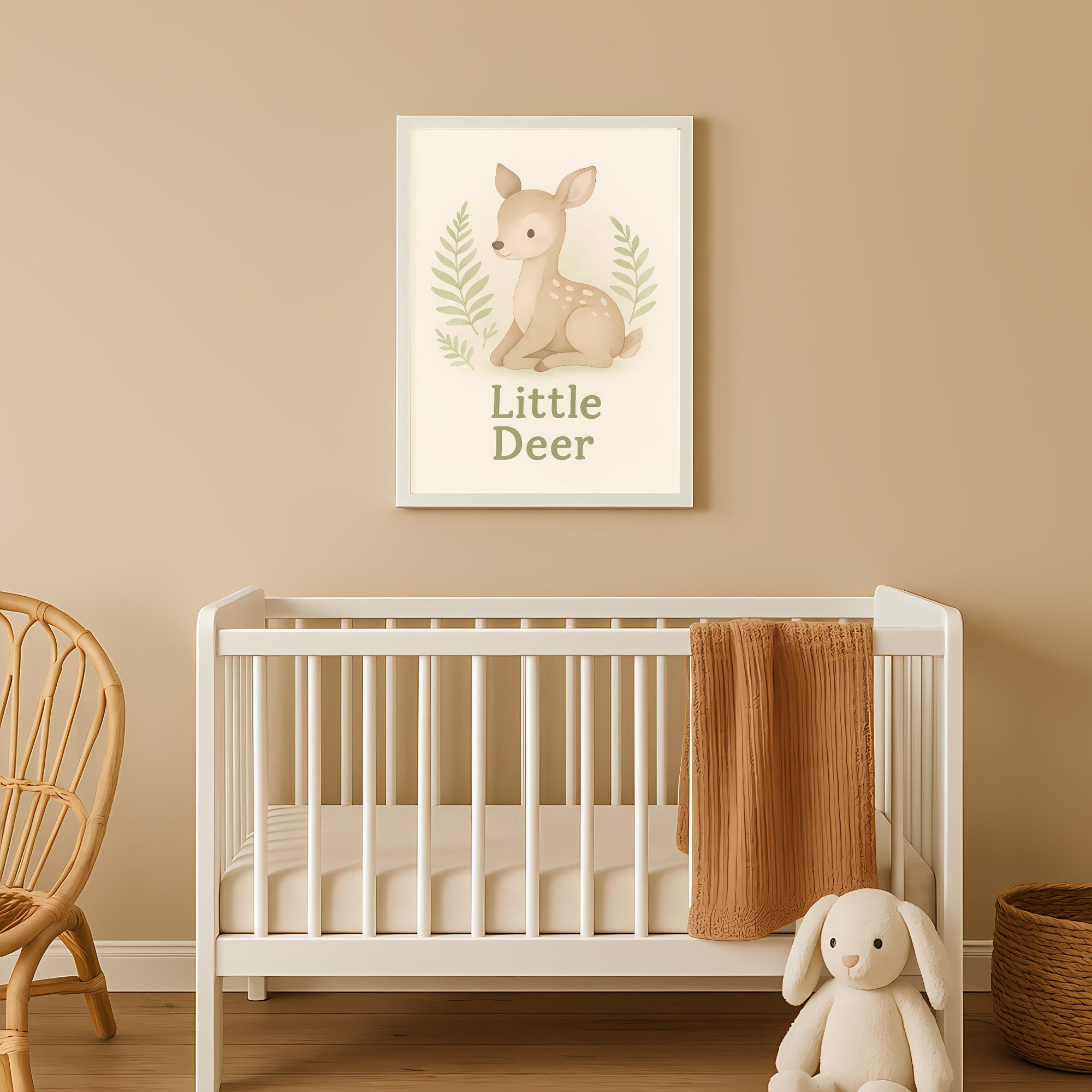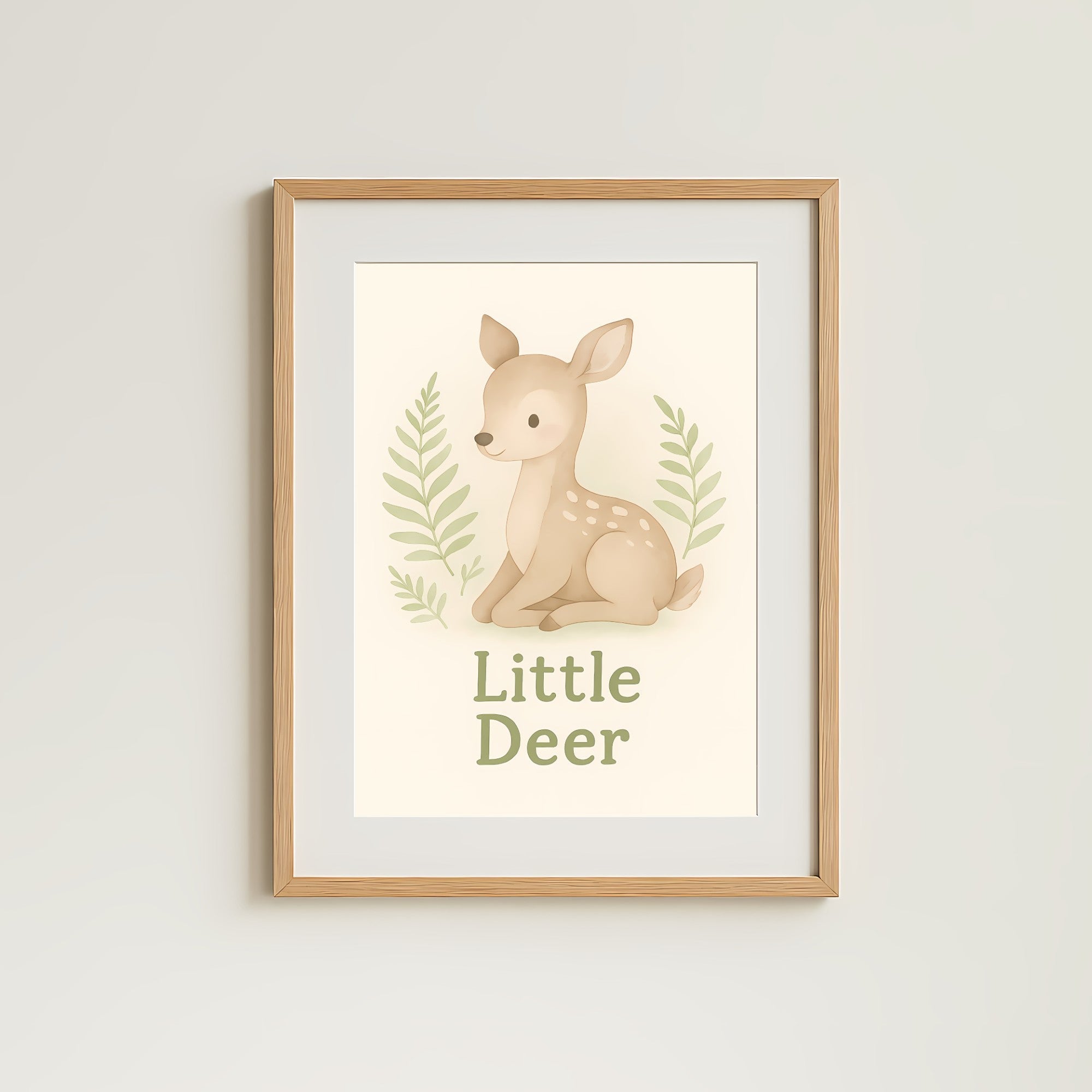 Bring a touch of woodland magic to your child’s space with this Little Deer Nursery Wall Art Print, featuring a sweet baby deer resting peacefully among soft greenery.