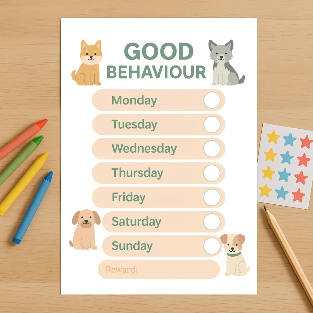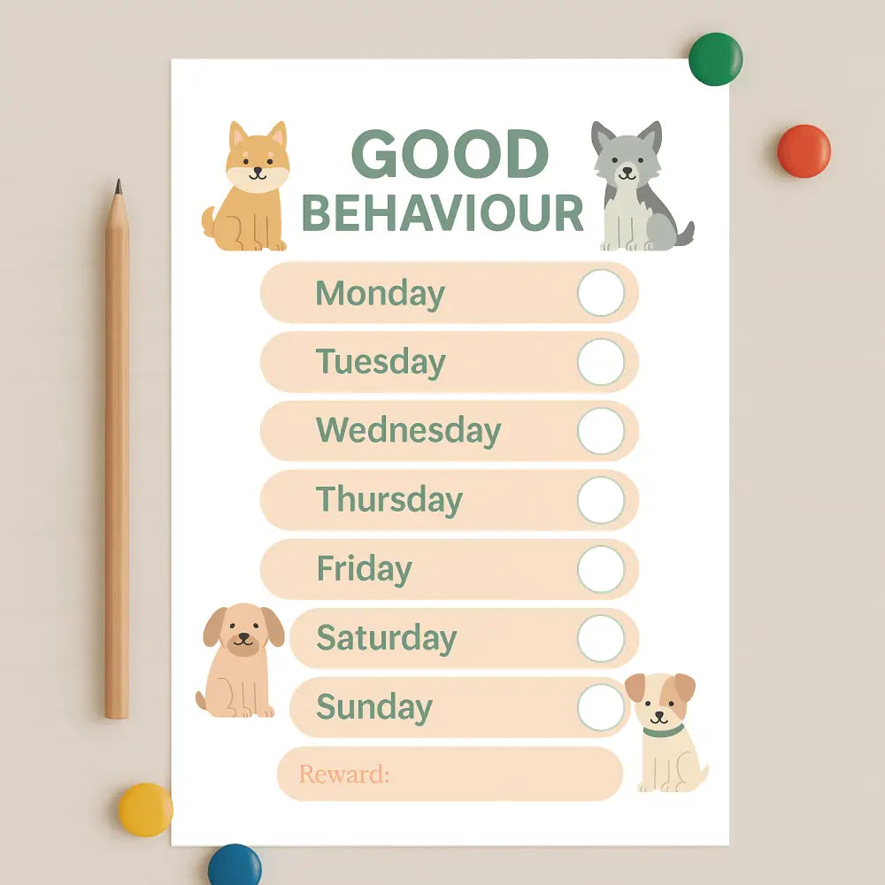 Encourage positive habits with this adorable dog-themed Good Behaviour Chart!