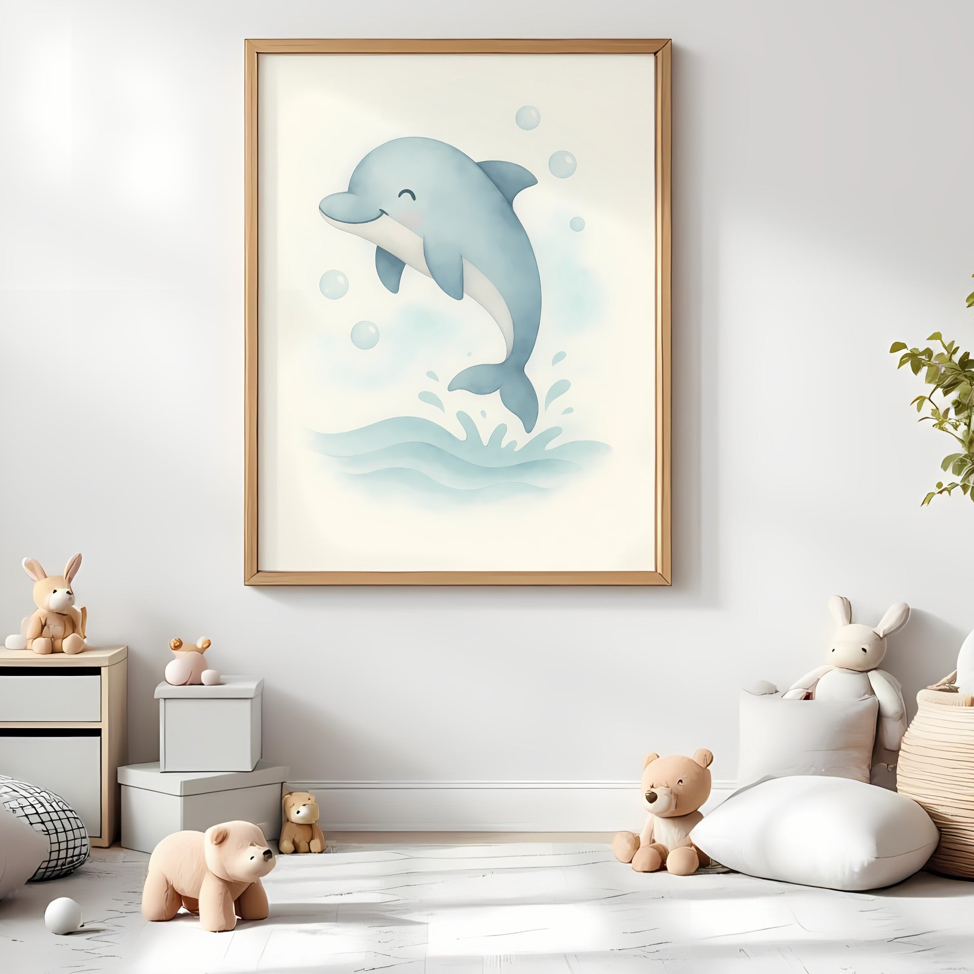 Dolphin Nursery Wall Art Print | Ocean Animal Watercolour | Digital Download