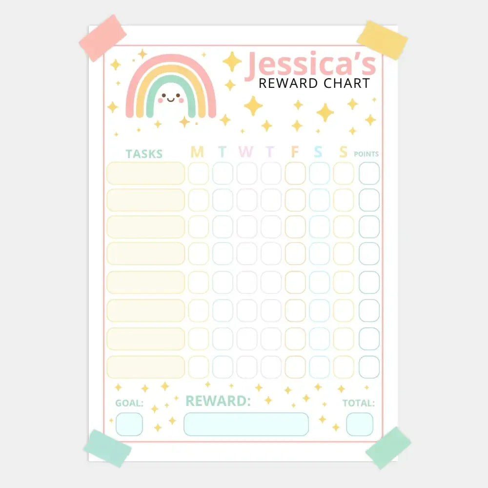 Editable Kids Reward Chart – Pastel Rainbow | Canva Template (A4 + US Letter)