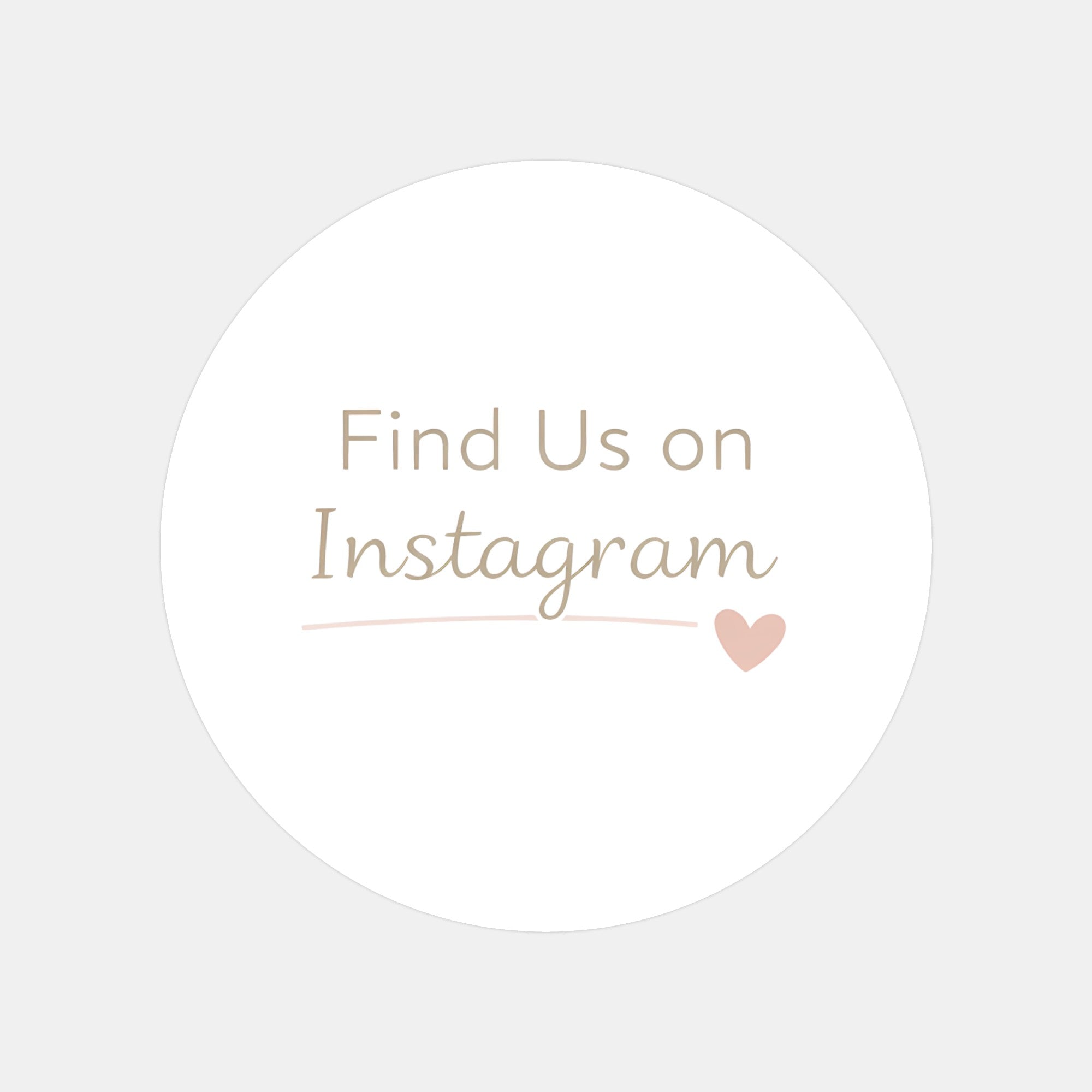 Invite customers to connect with your brand beyond the purchase with these elegant “Find Us on Instagram” round stickers, designed to subtly encourage social media engagement.