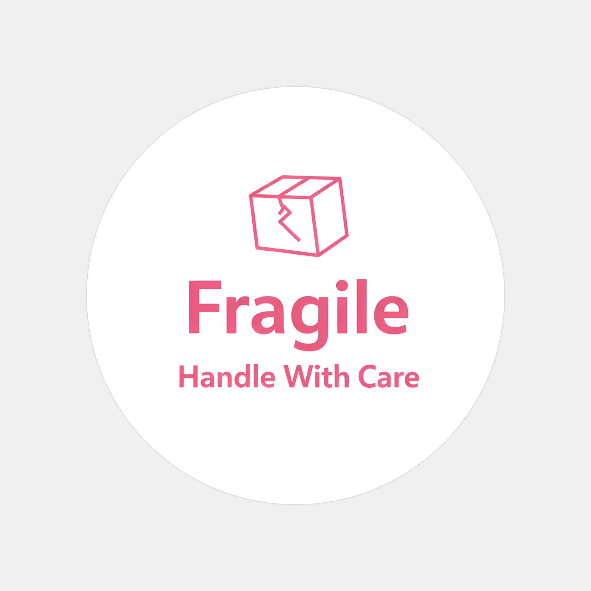 Make sure your parcels are noticed with these bold yet clean “Fragile – Handle With Care” round stickers, designed to clearly signal delicate contents while still looking modern and professional.
