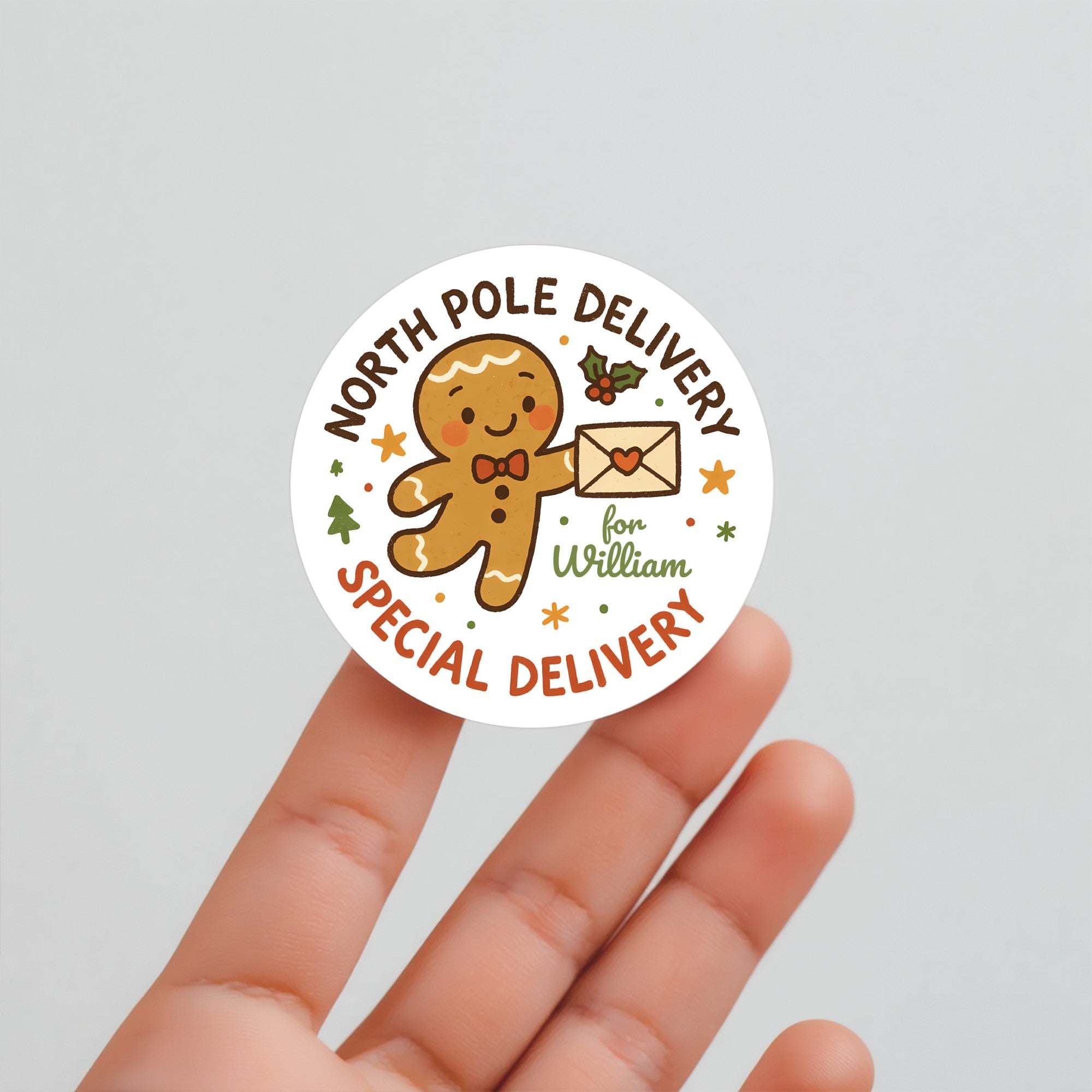 Gingerbread Personalised Christmas Stickers – North Pole Delivery Label