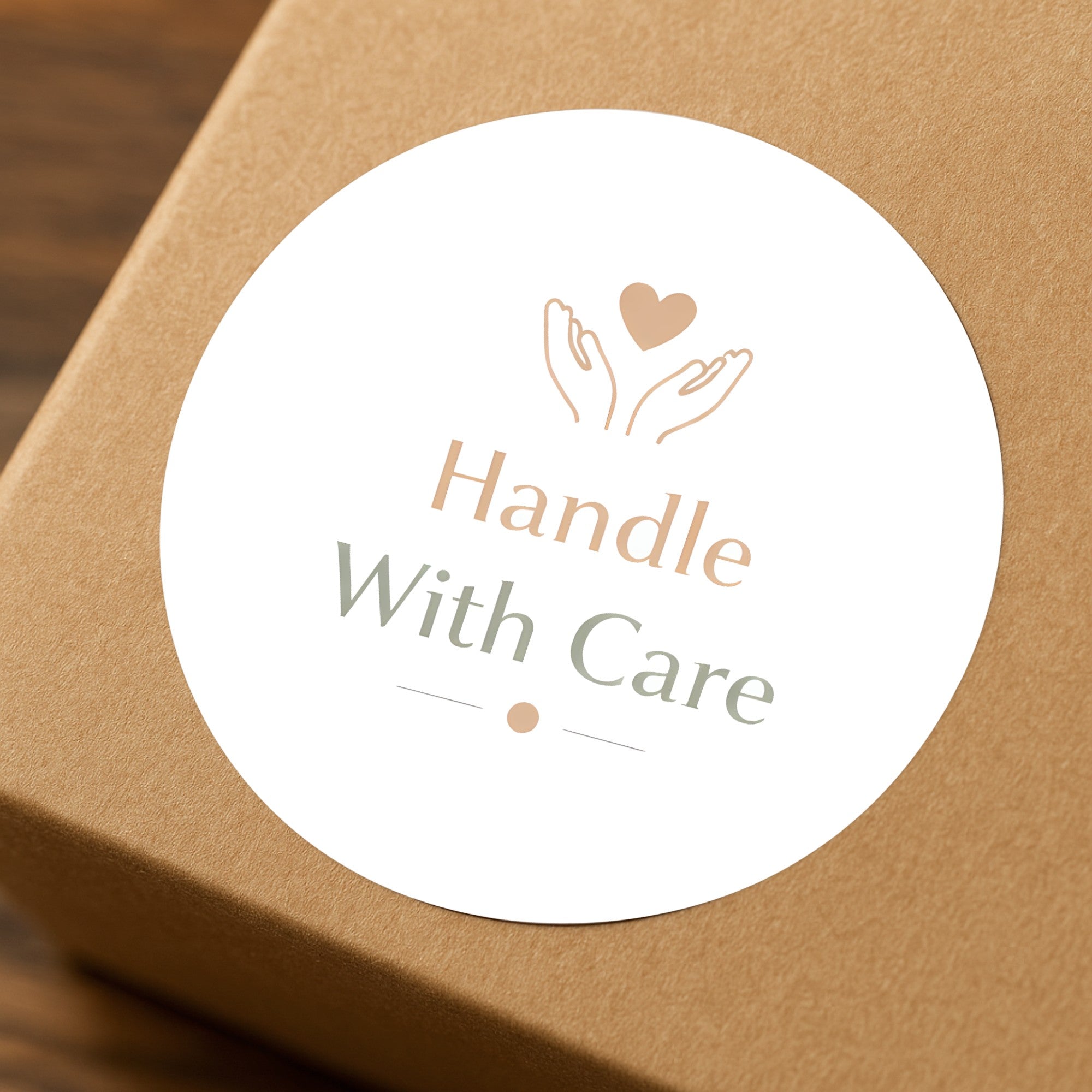 Protect what matters with these elegant “Handle With Care” round stickers, designed to gently communicate care and caution while maintaining a calm, premium packaging aesthetic.