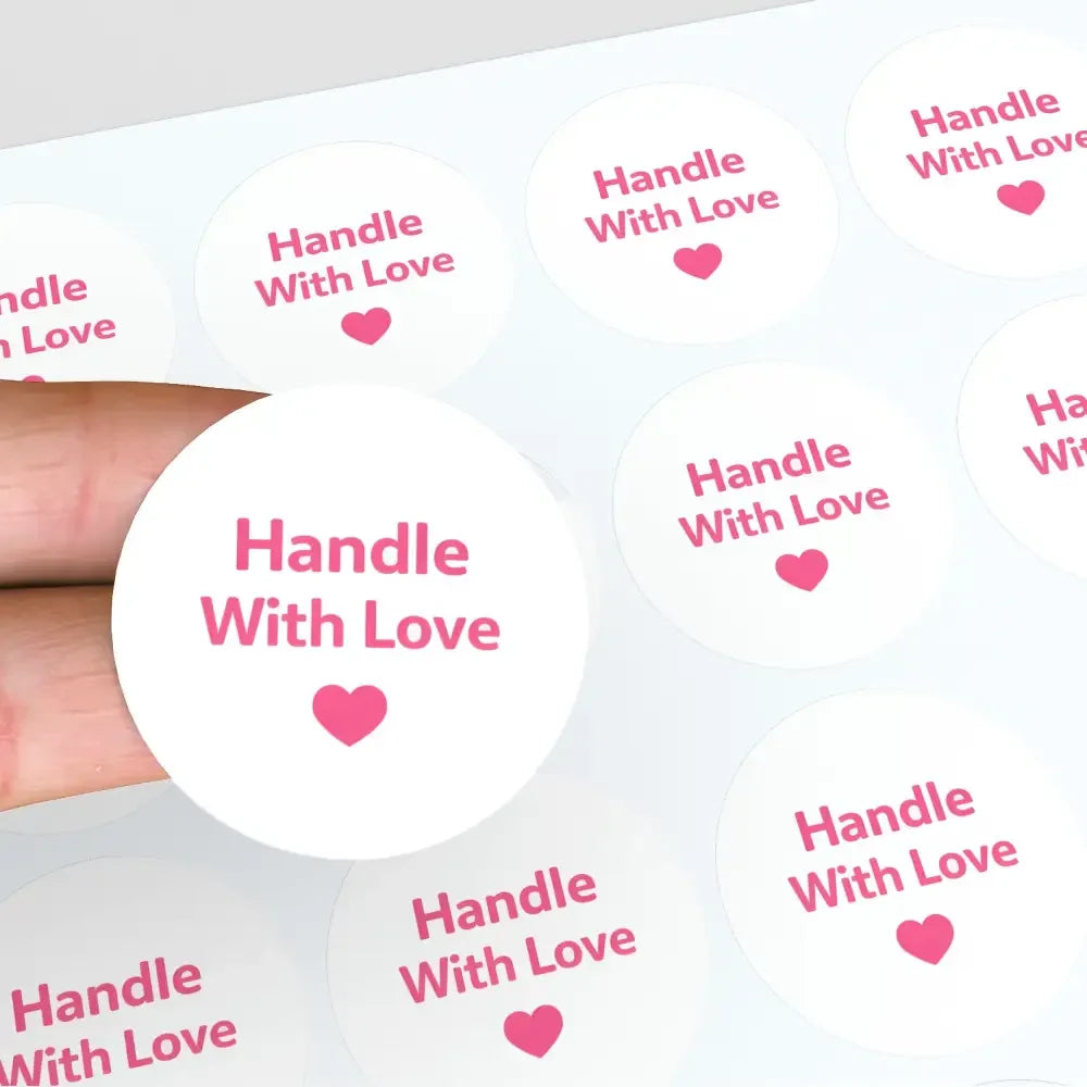 Add a heartfelt finishing touch to your orders with these cheerful “Handle With Love” round stickers, designed to show customers their purchase was packed with care.