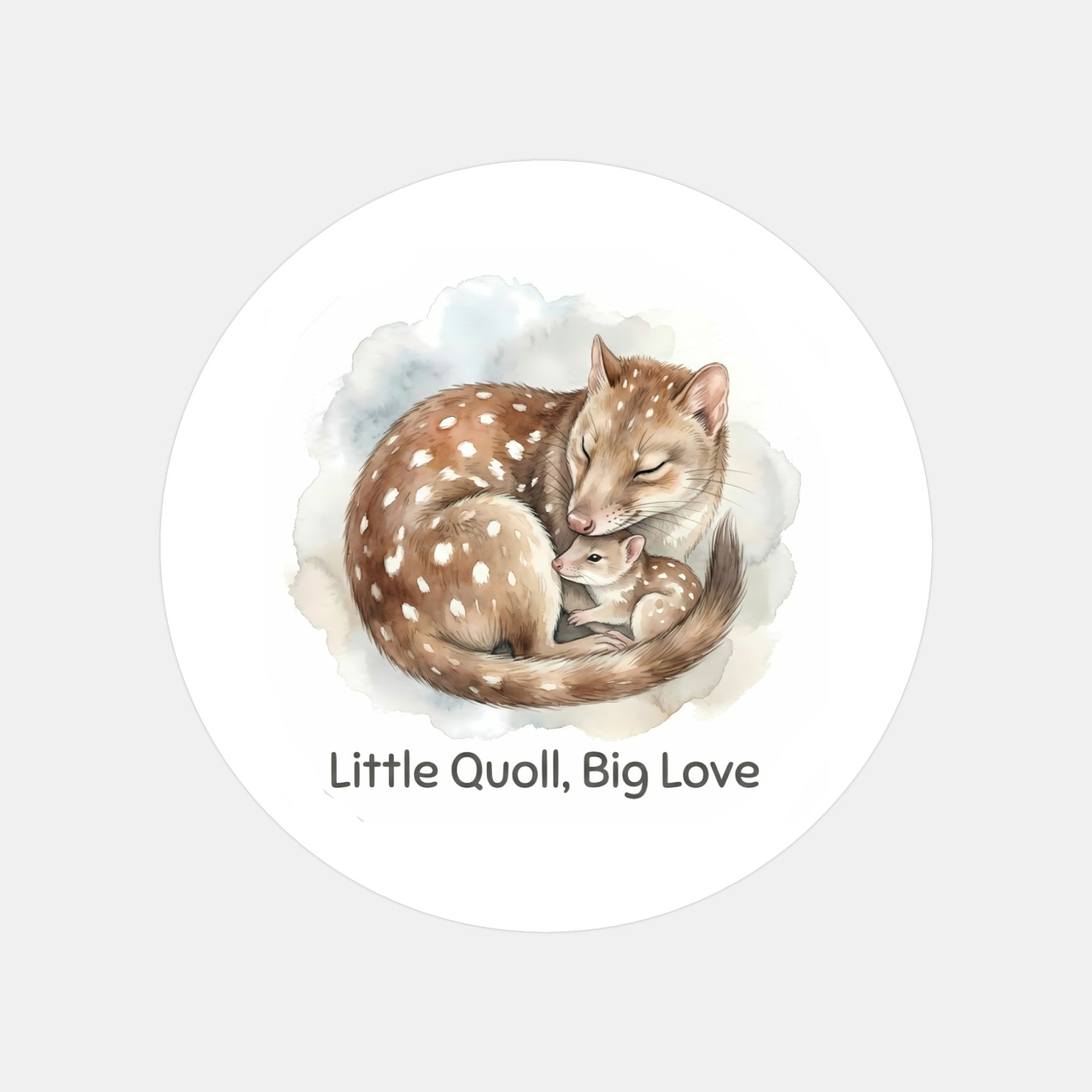 Little Quoll, Big Love Sticker – Tasmanian Wildlife Mother & Baby Round Sticker