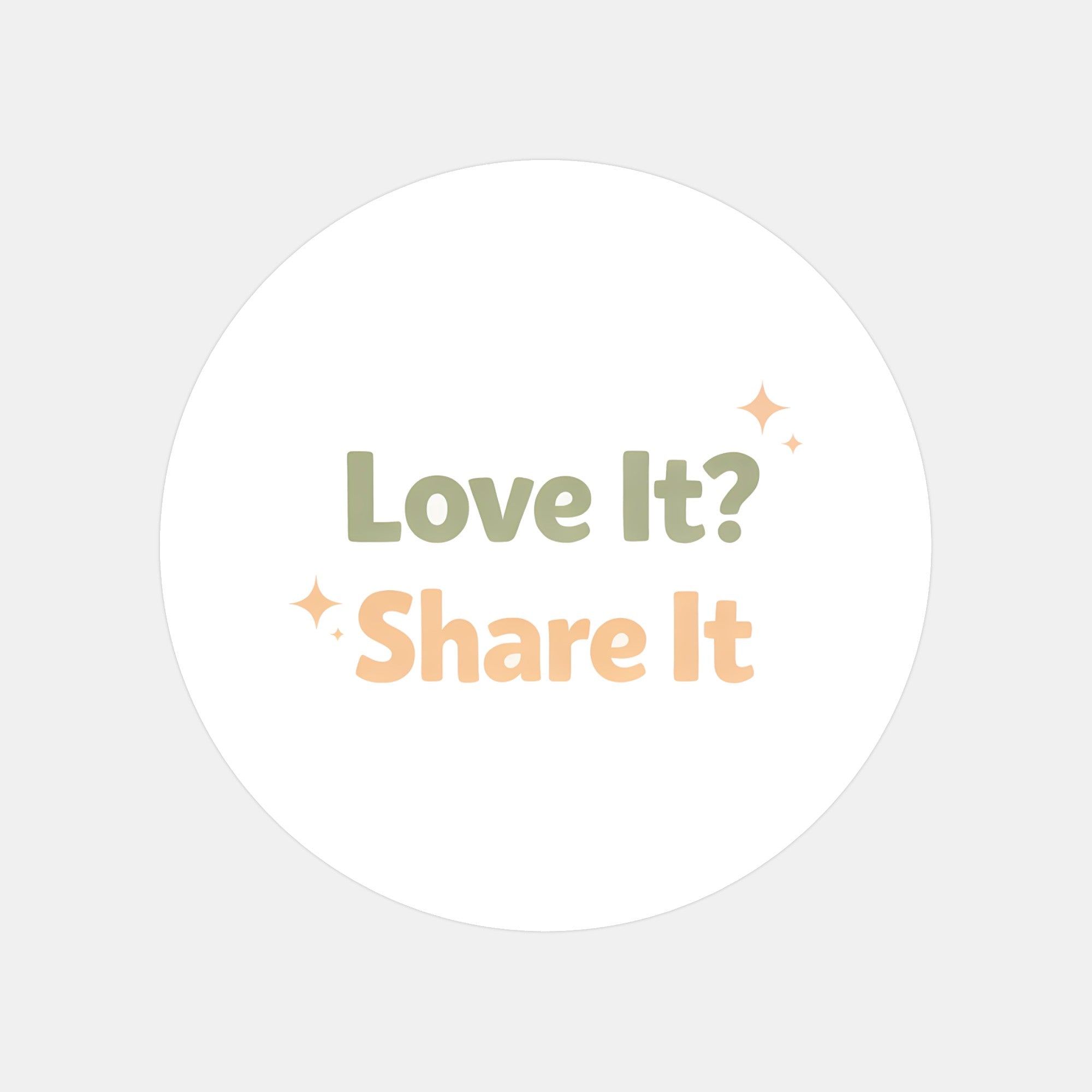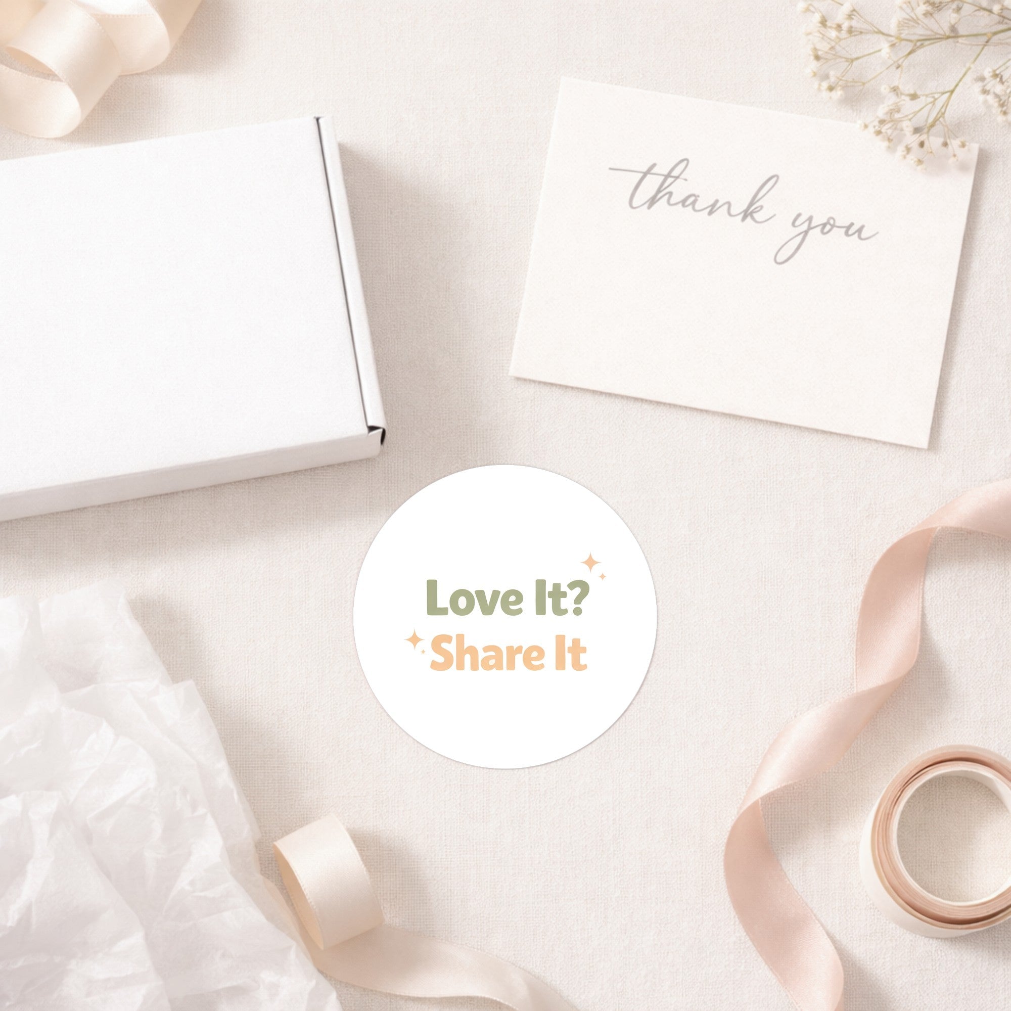 Encourage happy customers to share their purchase with these friendly “Love It? Share It” round stickers, designed to boost word-of-mouth and social media engagement.