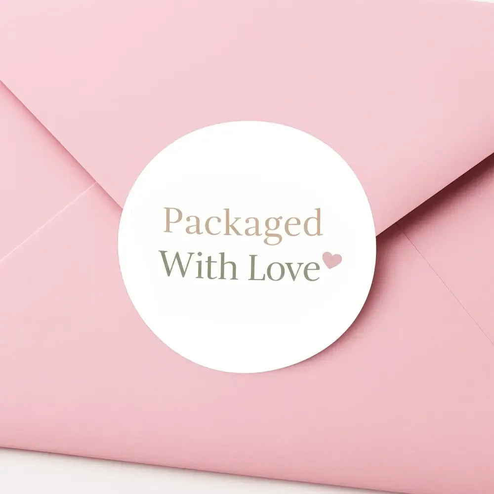 Add a gentle, heartfelt finishing touch to your orders with these elegant “Packaged With Love” round stickers, designed to make every parcel feel warm, thoughtful, and personal.