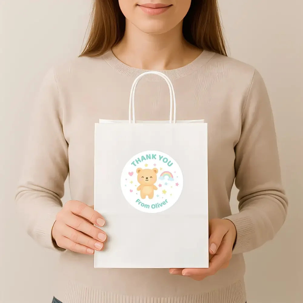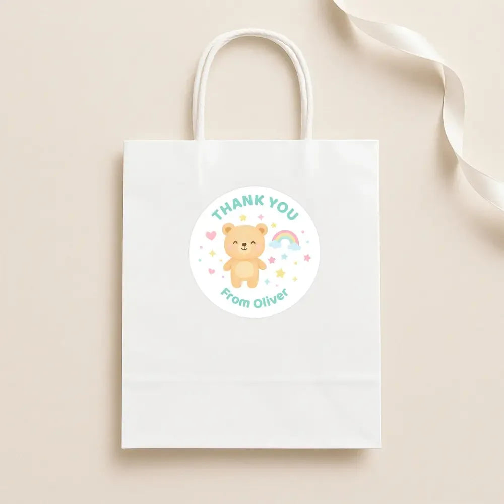 Pastel Bear Thank You Stickers – Custom Name Kids Birthday Party Favour Labels