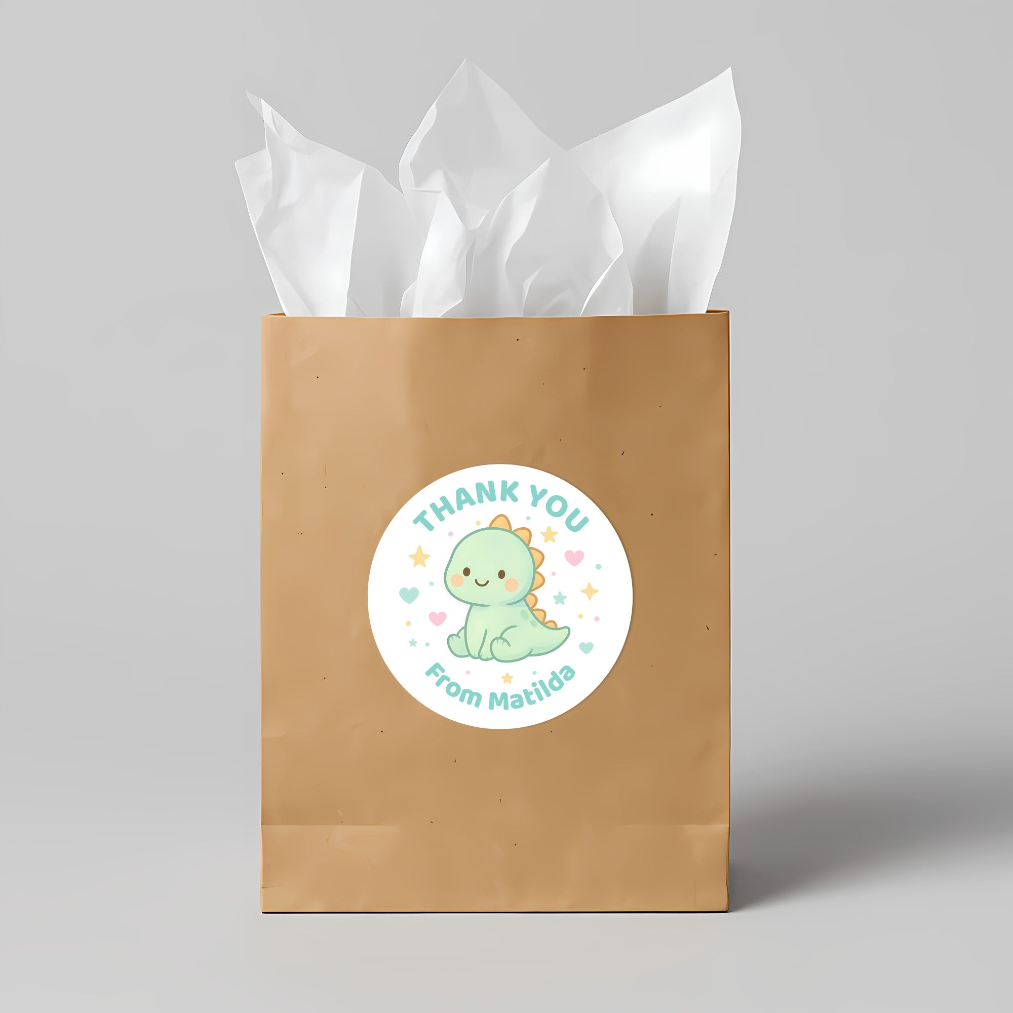 Pastel Dinosaur Thank You Stickers – Custom Name Kids Birthday Party Favour Labels