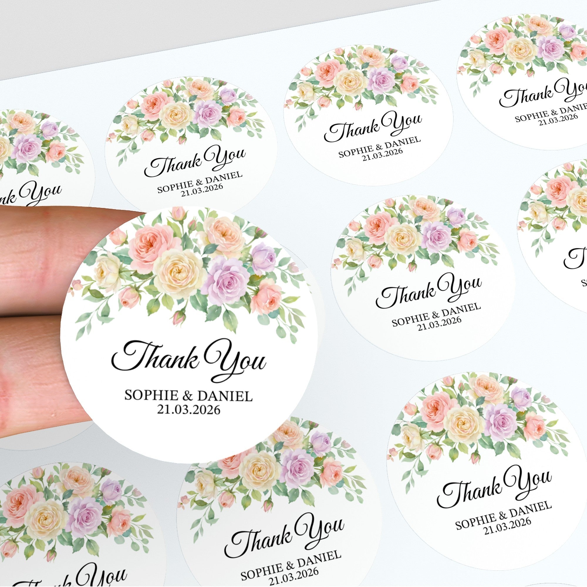 Pastel Garden Rose Wedding Thank You Stickers | Personalised Floral Favour Labels
