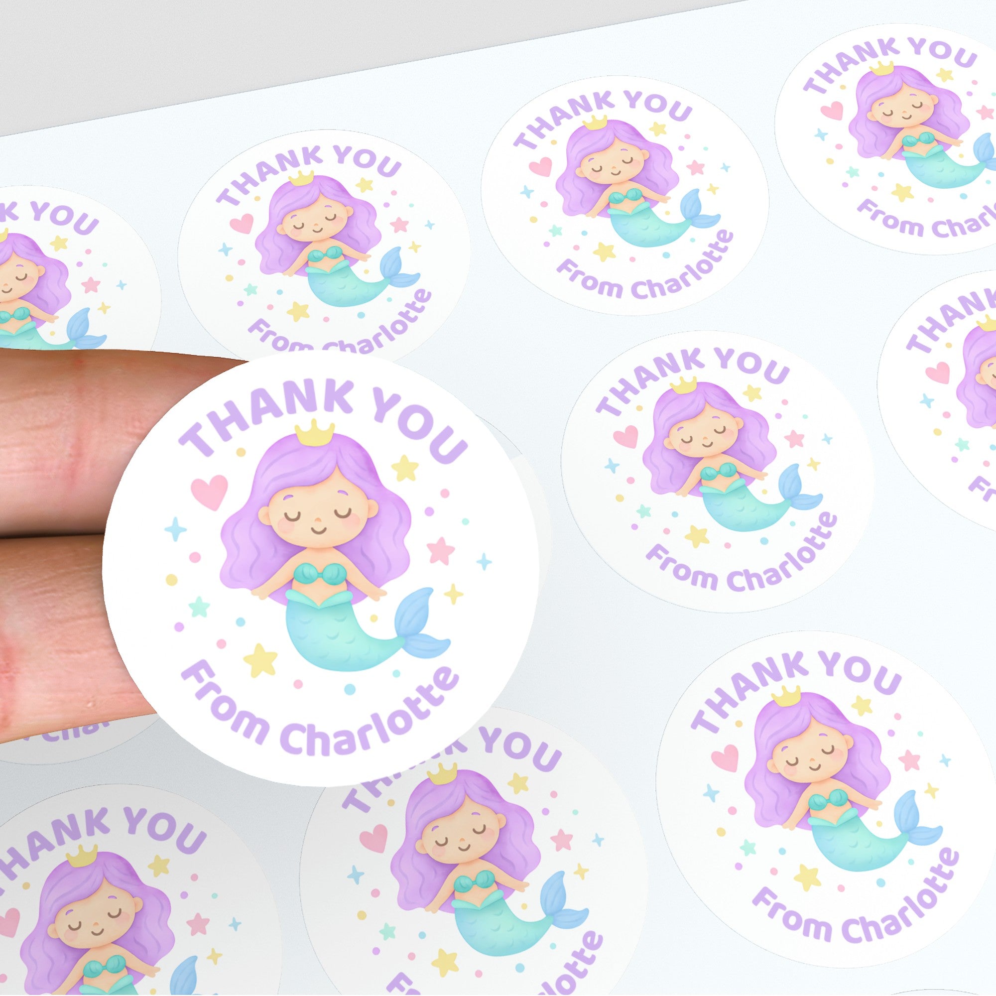 Pastel Mermaid Thank You Stickers – Custom Name Kids Birthday Party Favour Labels