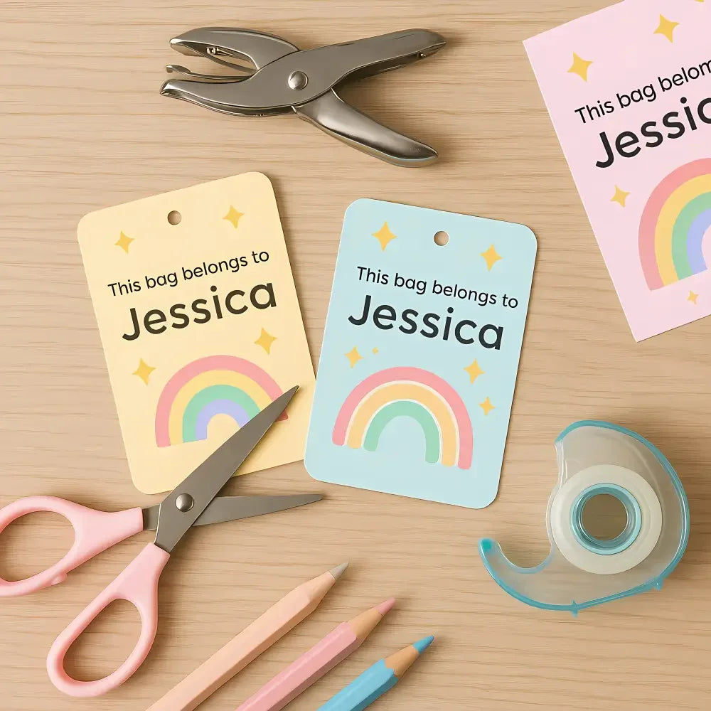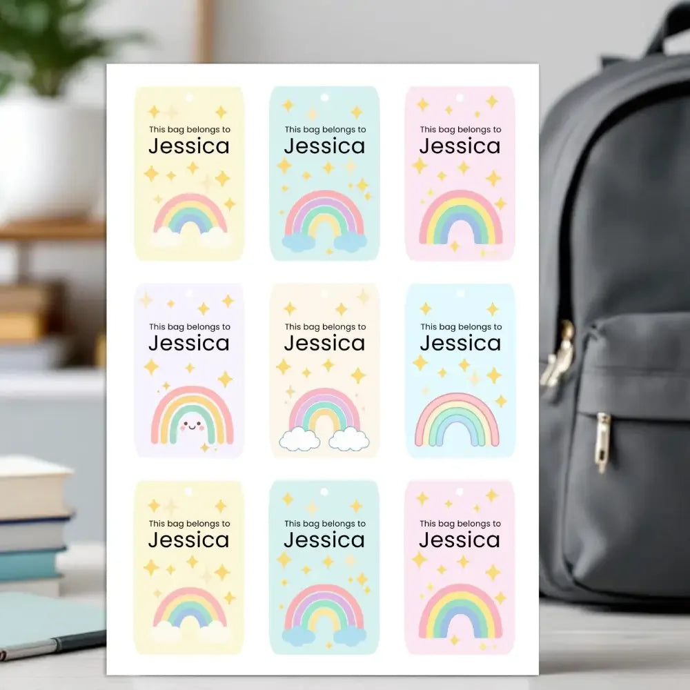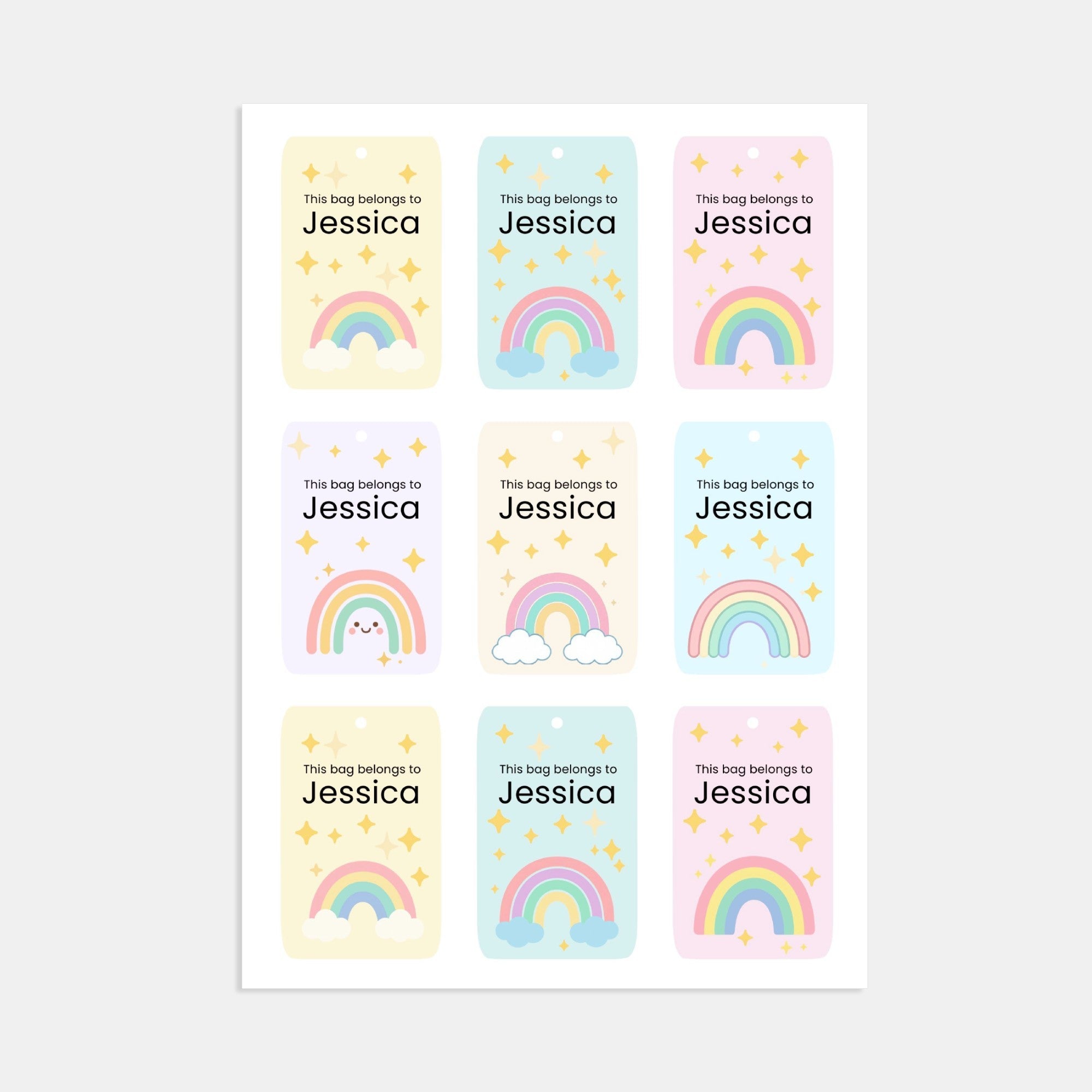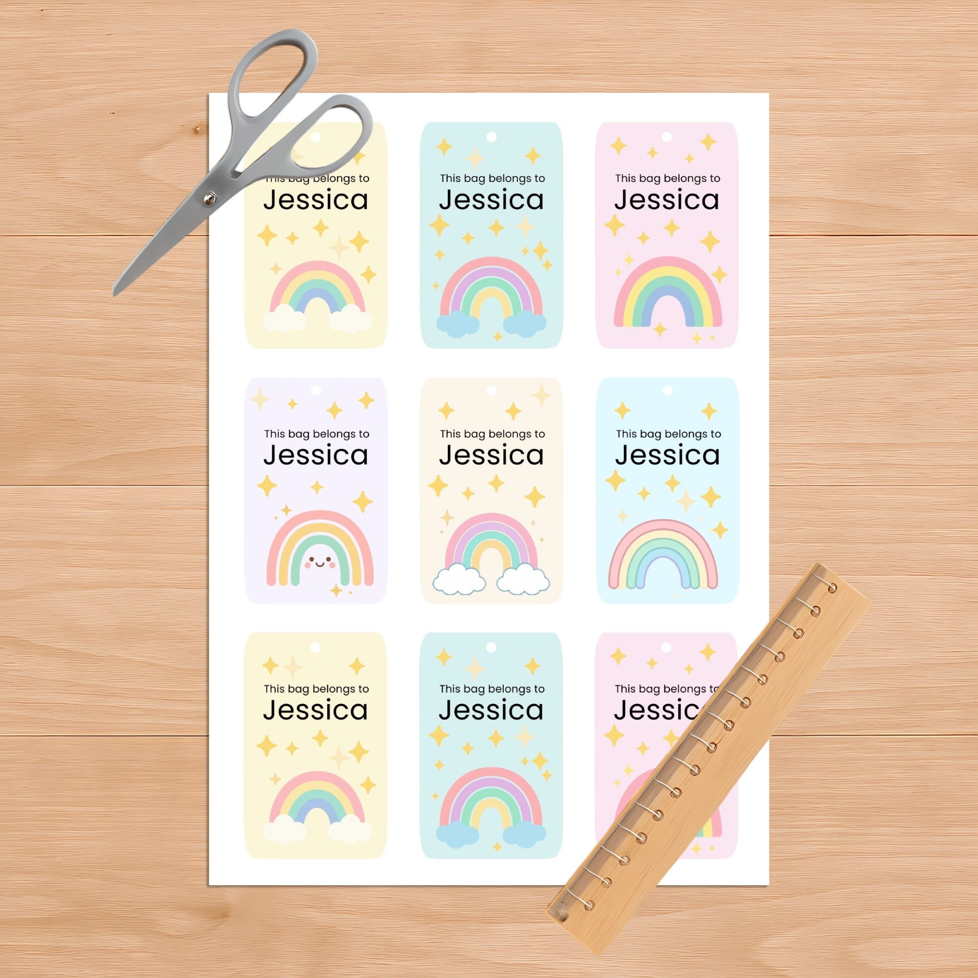 Pastel Rainbow Kids Bag Tags Printable Personalised Name Tags A4 Canva Template