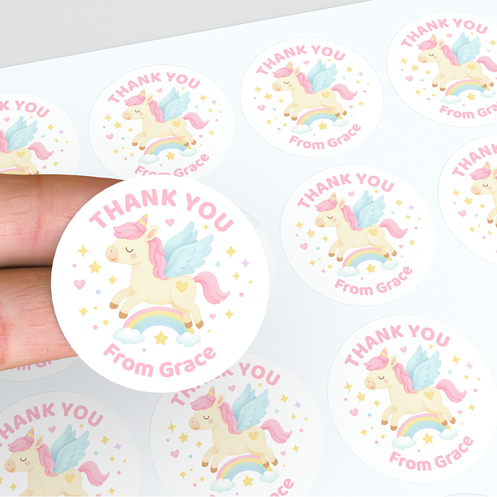 Pastel Unicorn Thank You Stickers – Custom Name Kids Birthday Party Favour Labels