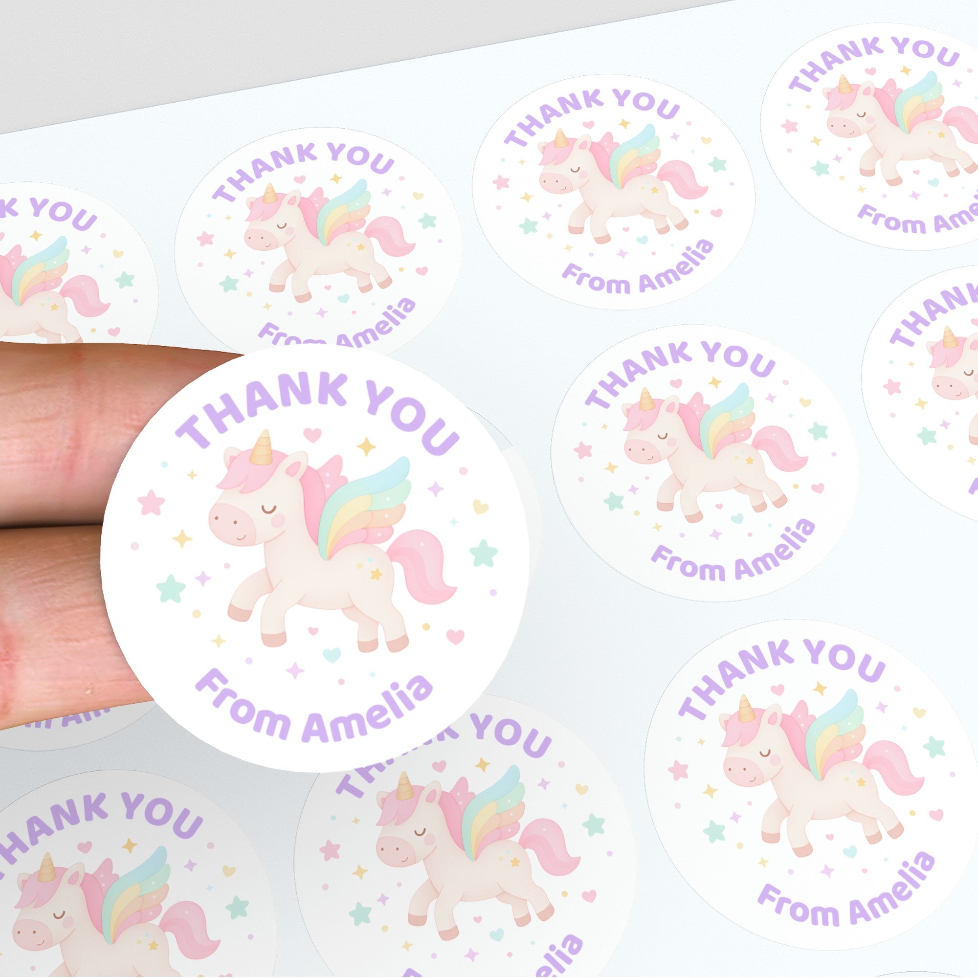 Pastel Unicorn Thank You Stickers – Custom Name Kids Birthday Party Favour Labels