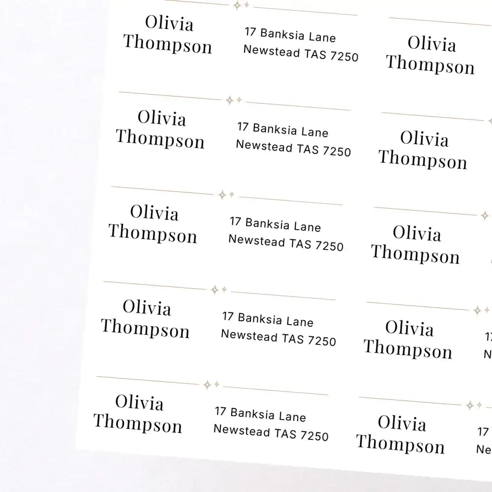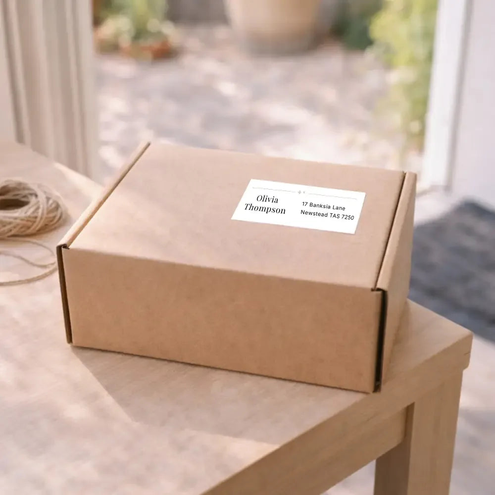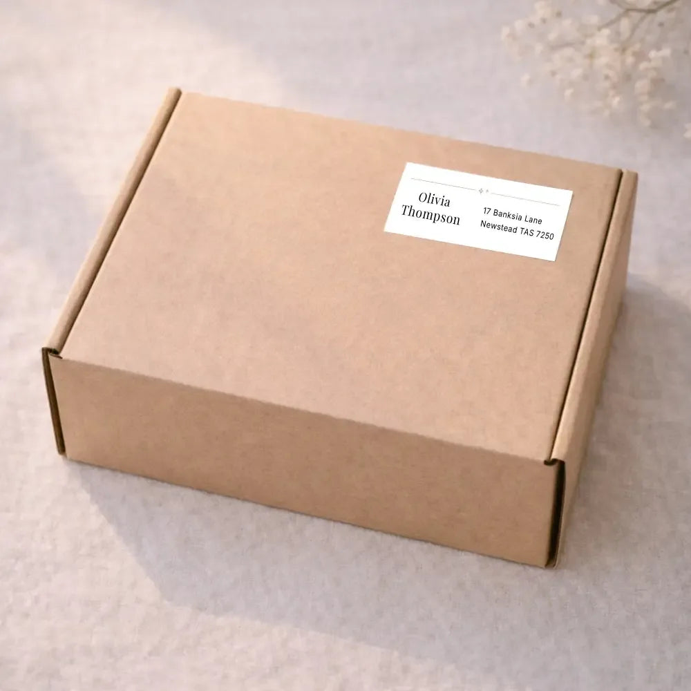 Each label is customised with your name or business name and address, making them perfect for return addresses while reinforcing a cohesive, considered brand presentation.