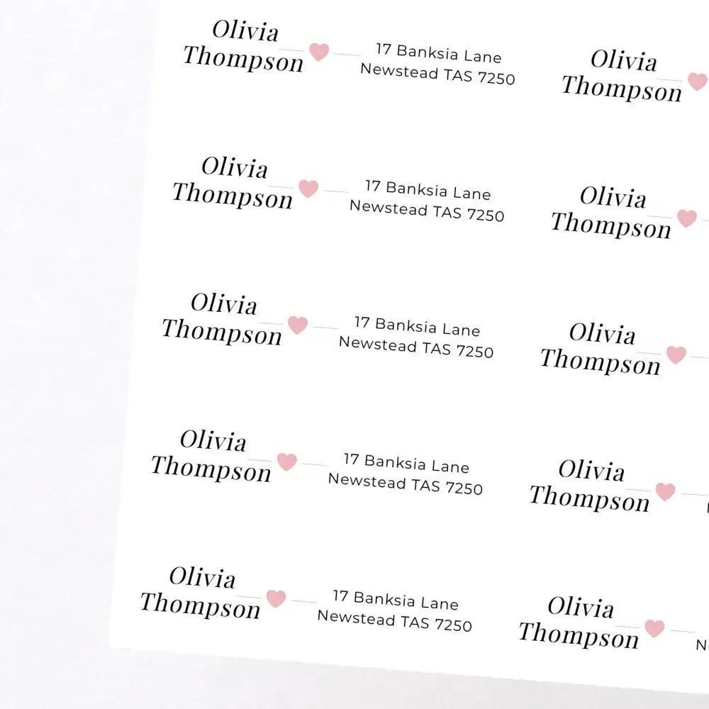 Featuring a clean white background, elegant typography, and a soft heart accent, these address labels balance practicality with a boutique aesthetic, perfect for personal mail or small business packaging that deserves a refined finish.