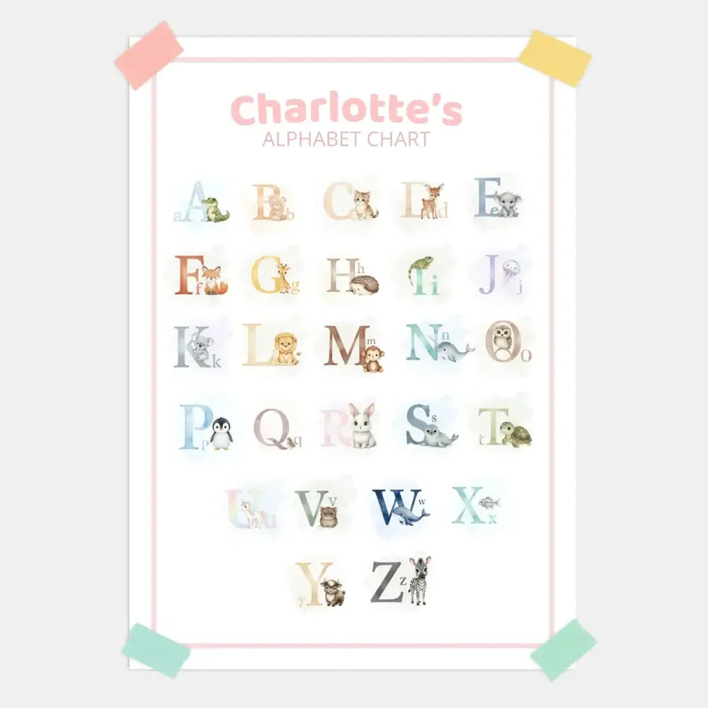 Make learning the alphabet gentle, fun, and beautiful with this personalised A–Z Animal Alphabet Chart.