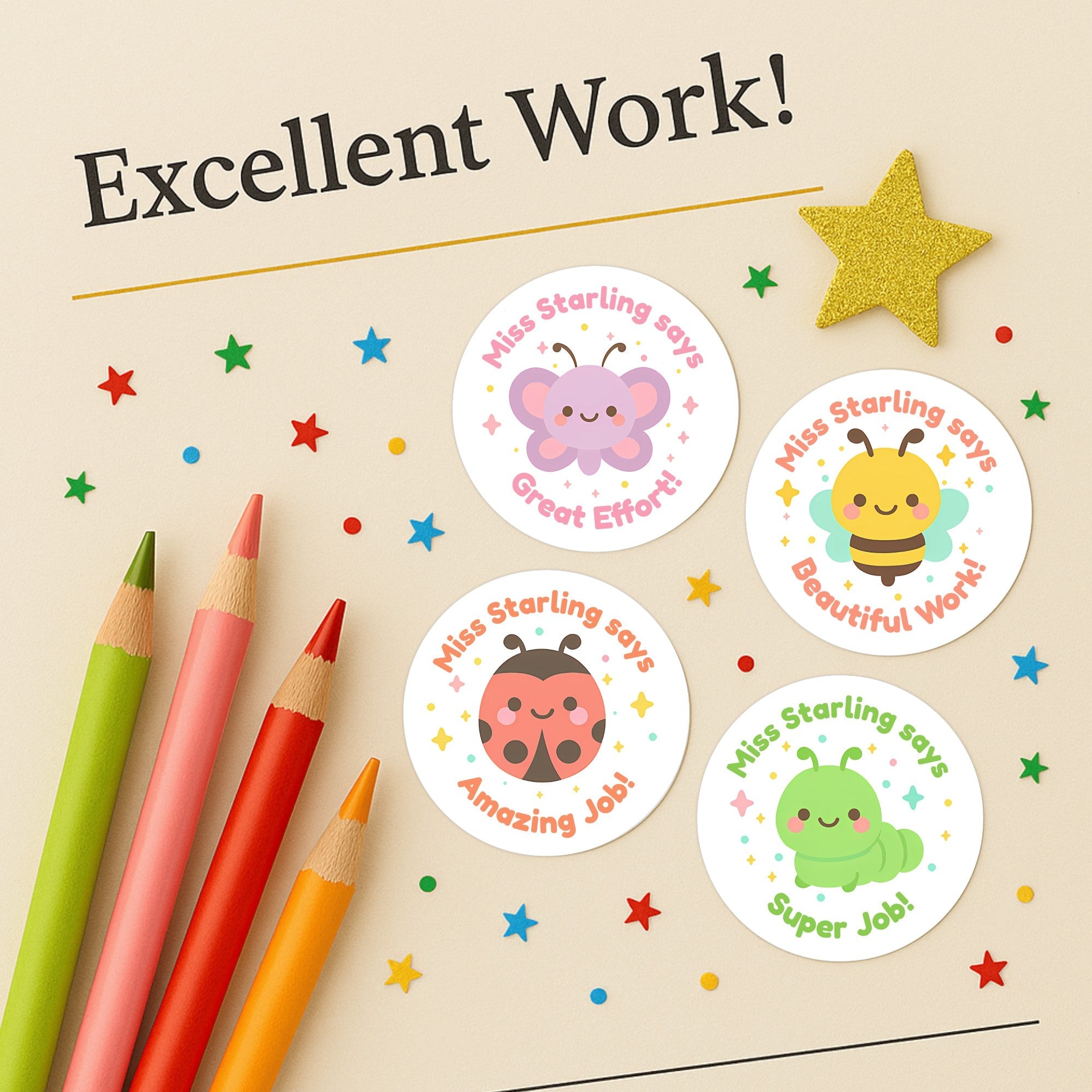 Each sticker includes your personalised name (e.g. “Miss Starling says”), adding a friendly and familiar touch that makes every reward feel extra special.