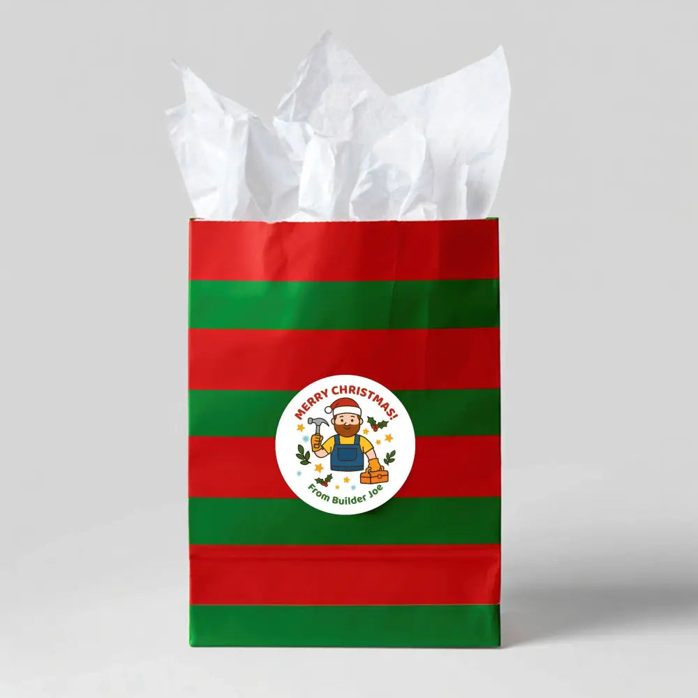 Personalised Builder Tradie Christmas Stickers – Merry Christmas Design