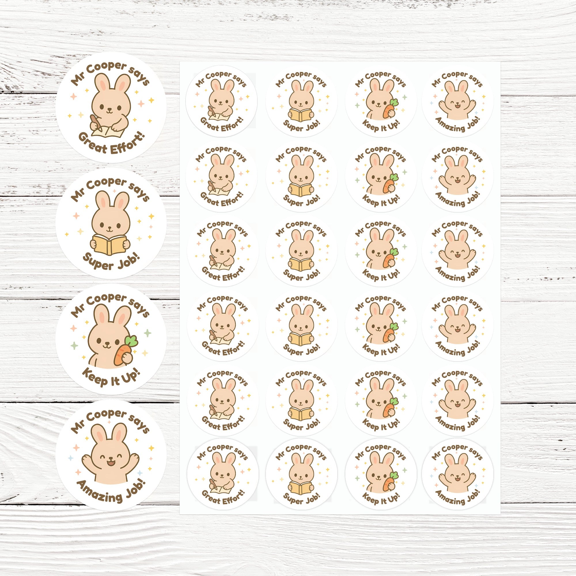 Personalised Bunny Reward Stickers for Teachers | Cute Classroom Praise Labels
