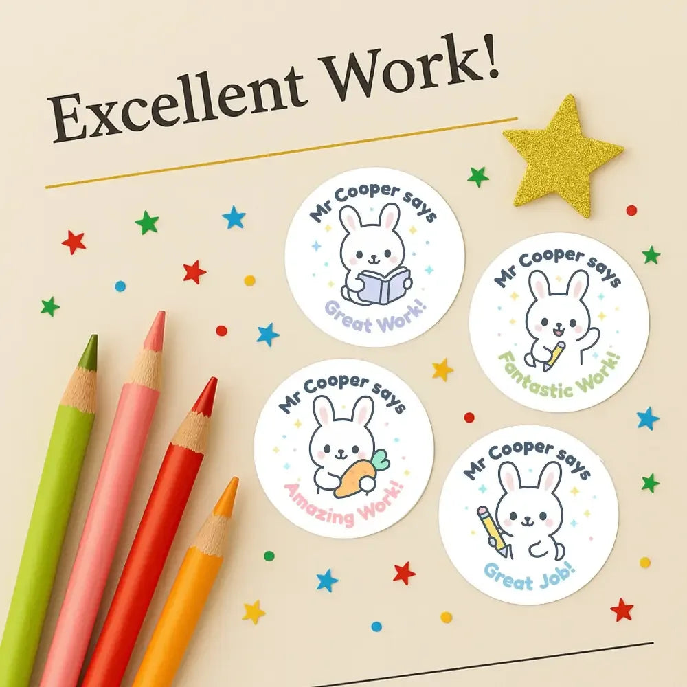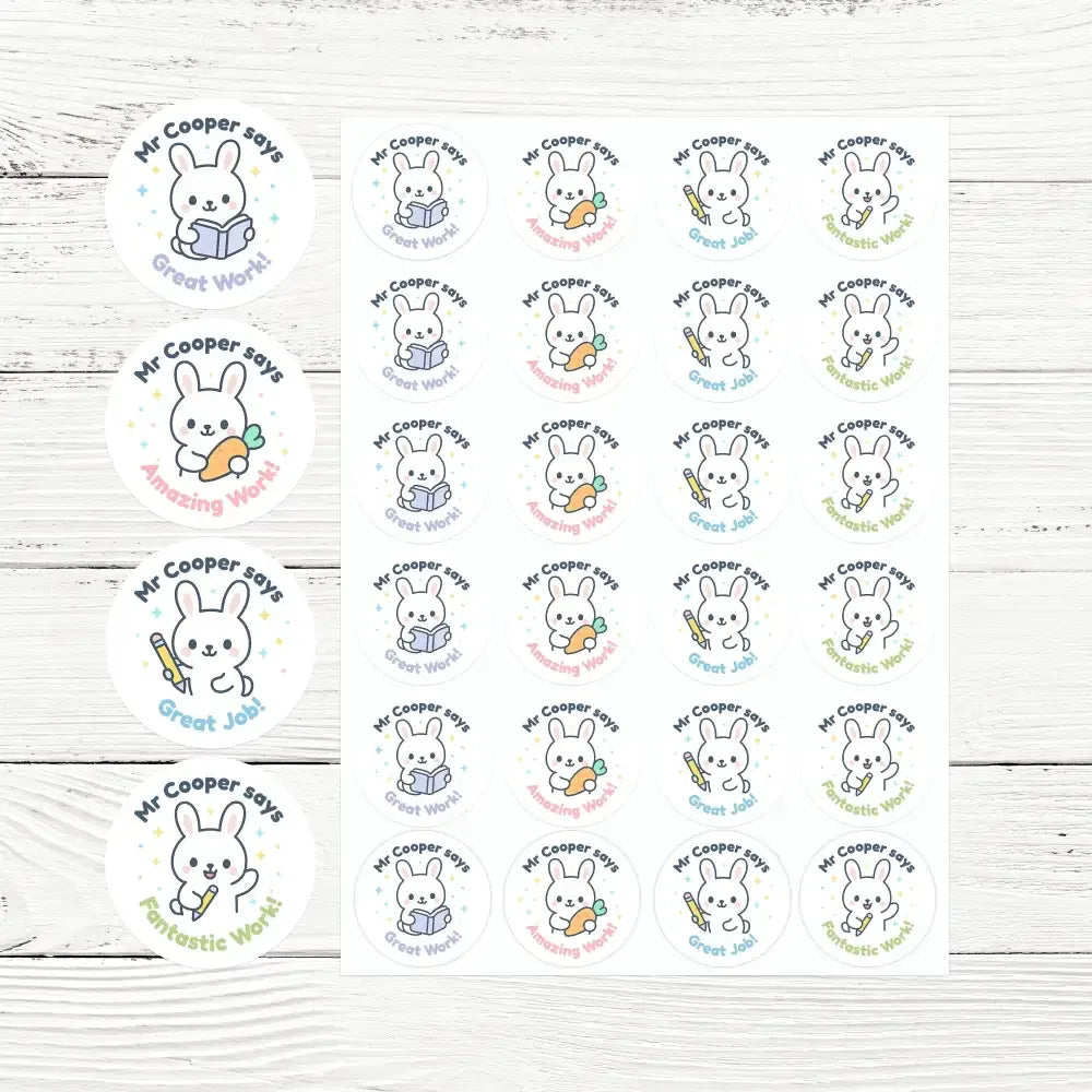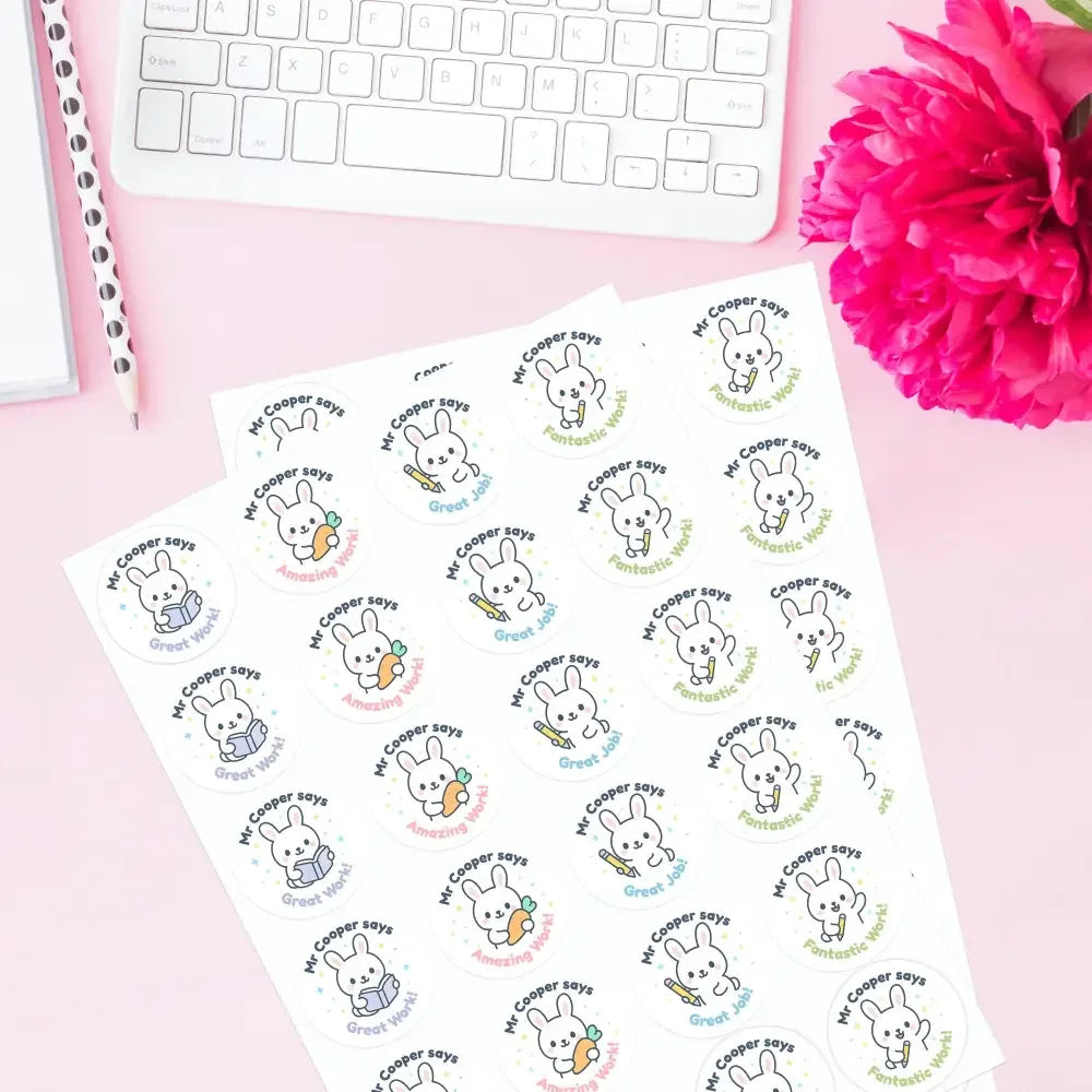 Personalised Bunny Teacher Reward Stickers | Cute Classroom Praise Labels