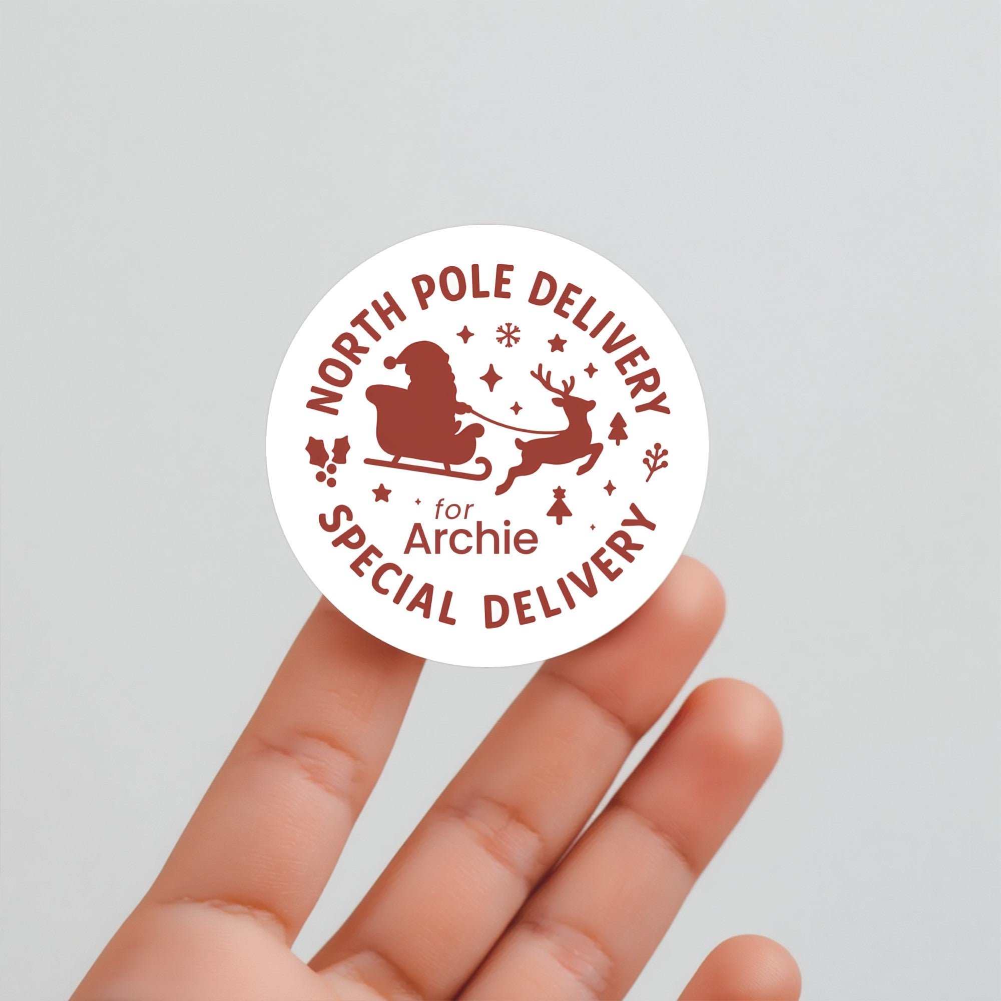 Personalised Christmas Stickers North Pole Special Delivery Name Labels