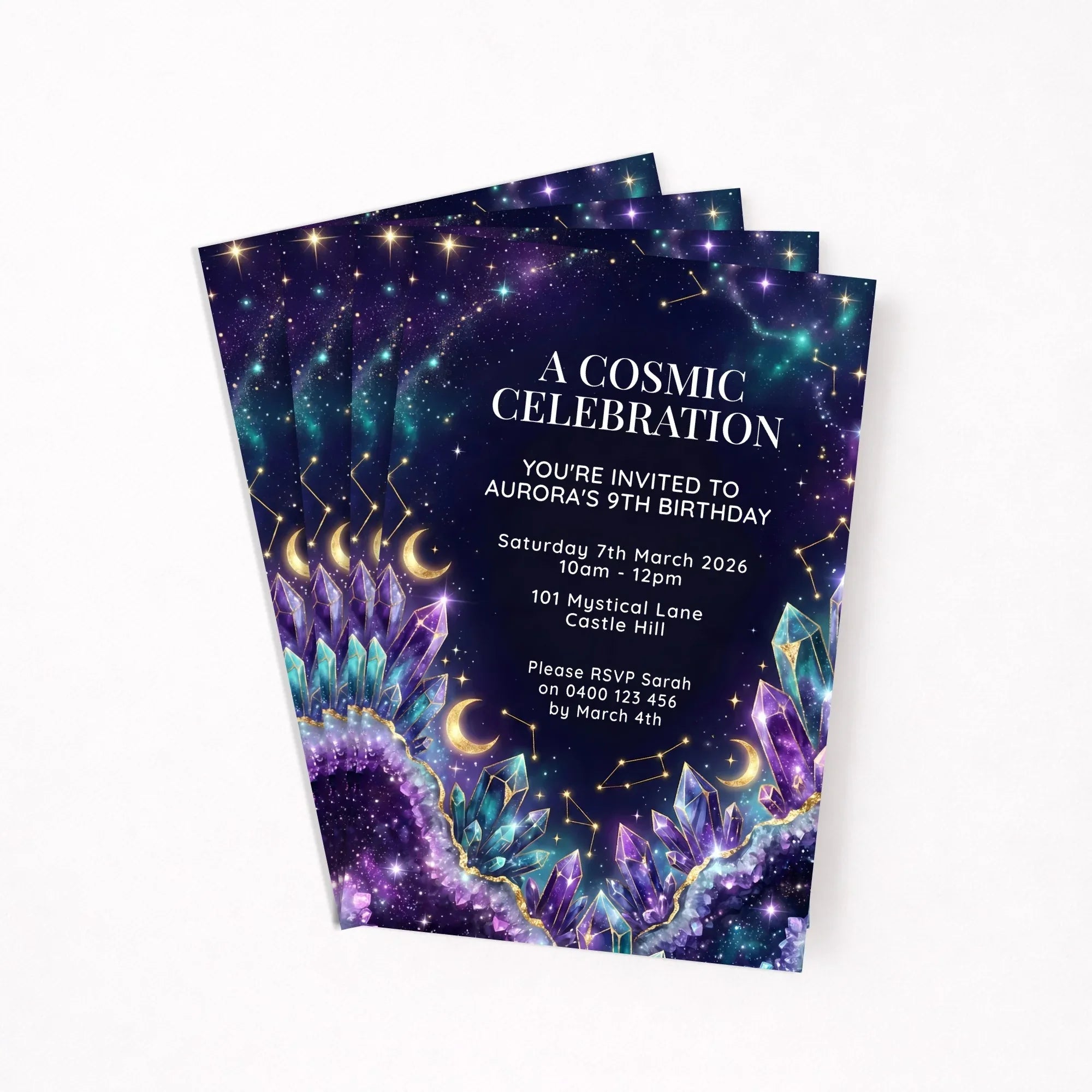 Personalised Cosmic Birthday Invitations | Galaxy Crystal Celestial Party Invite