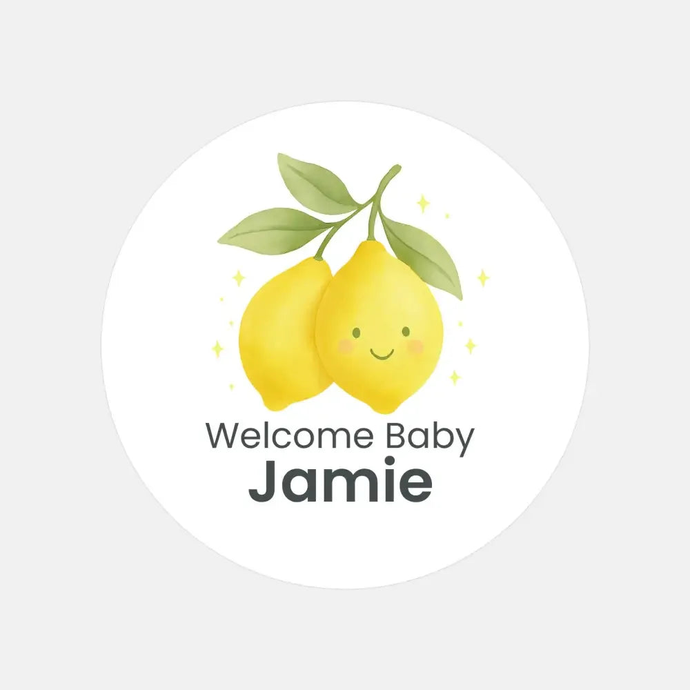 Personalised Cute Lemon Welcome Baby Stickers – Watercolour Citrus Gender-Neutral Favour Labels