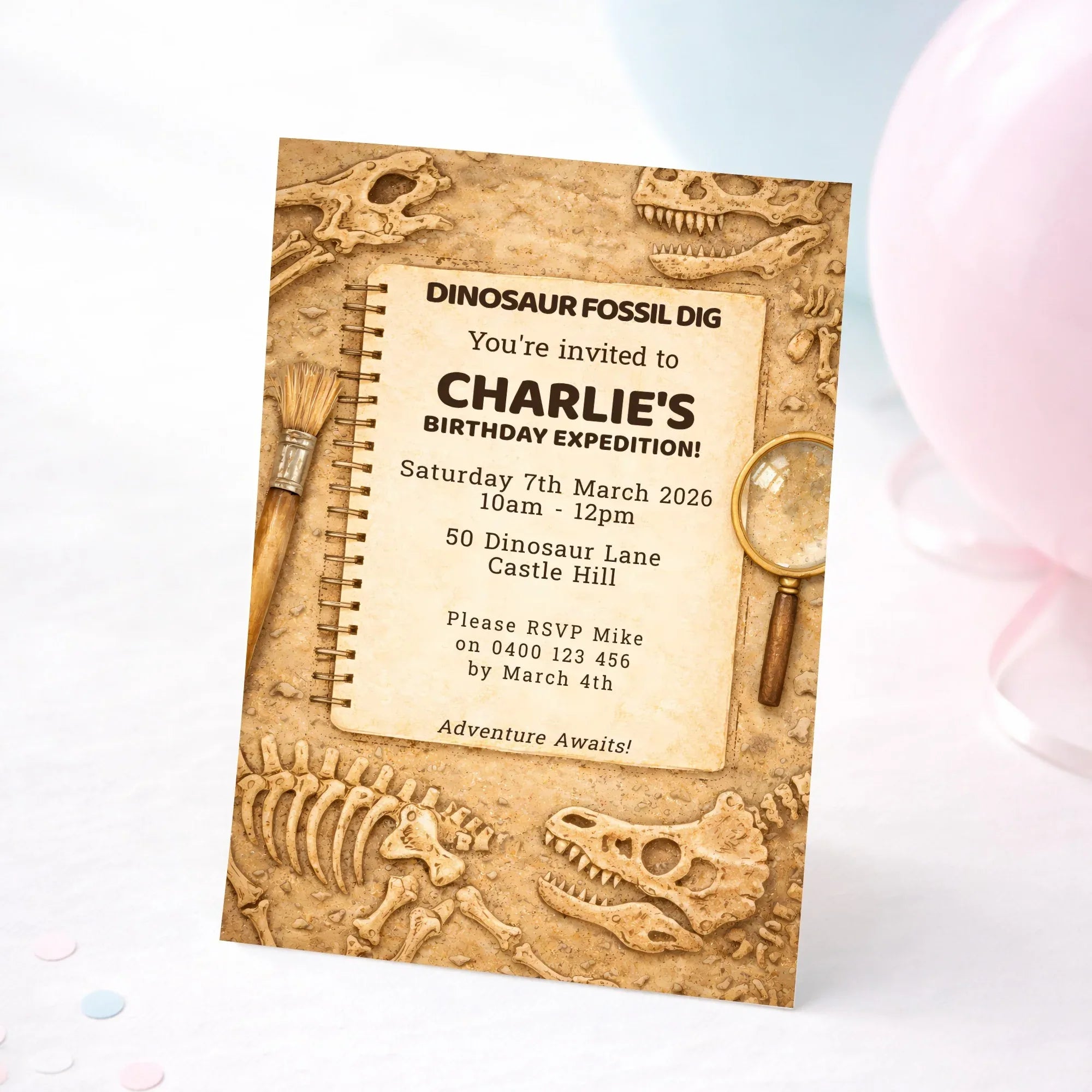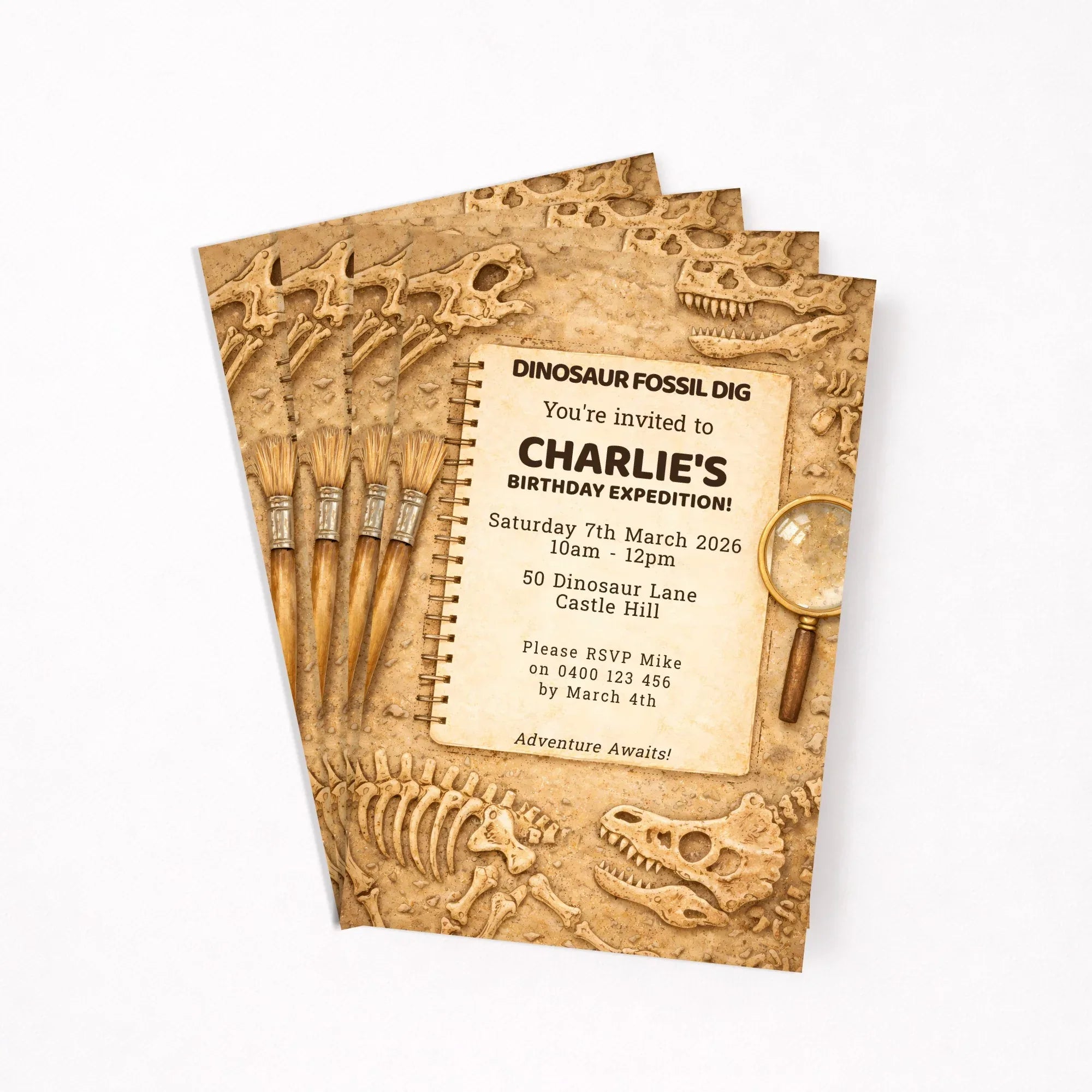 Personalised Dinosaur Fossil Dig Birthday Invitations Printed