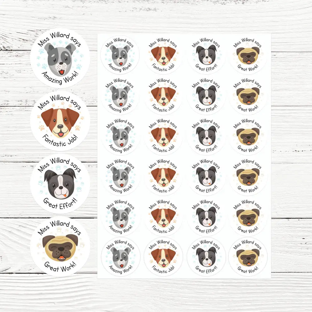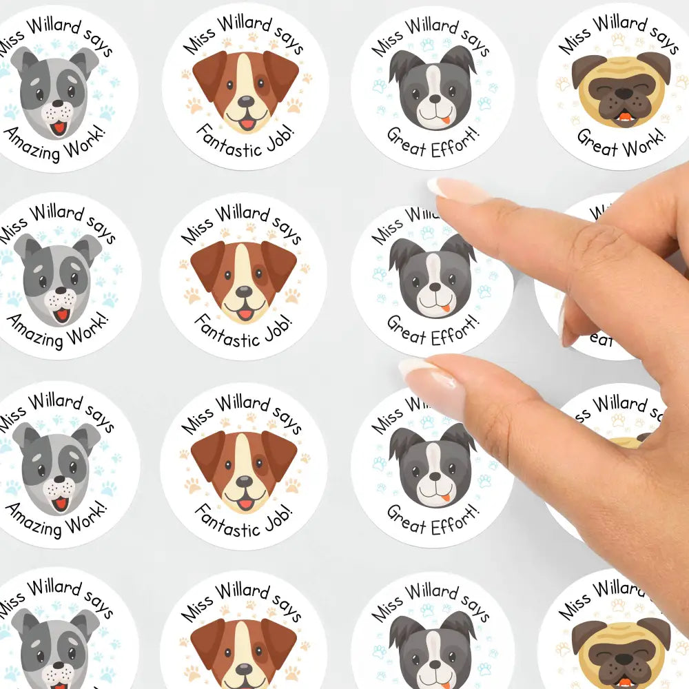 Personalised Dog Teacher Reward Stickers Labels Kids